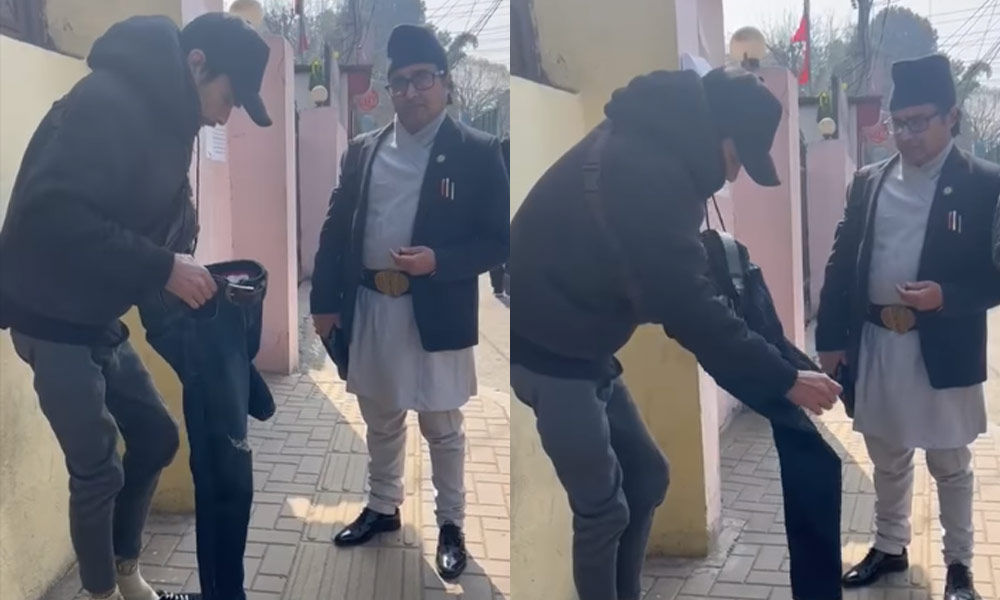 ललितपुर जिल्ला अदालतले एक सेवाग्राहीलाई अदालत प्रवेश गर्नुअघि पाइन्ट खोल्न लगाएको छ । च्यातिएको पाइन्टमा भित्र पस्न नपाइने भन्दै धरानबाट गएका सेवाग्राहीलाई पाइन्ट खोल्न लगाएर भित्री ट्राउजरमा अदालतमा प्रवेश गराएको अधिवक्ता दिनेश राज सत्यालले सामाजिक सञ्जालमाफर्त जानकारी दिएका छन् ।