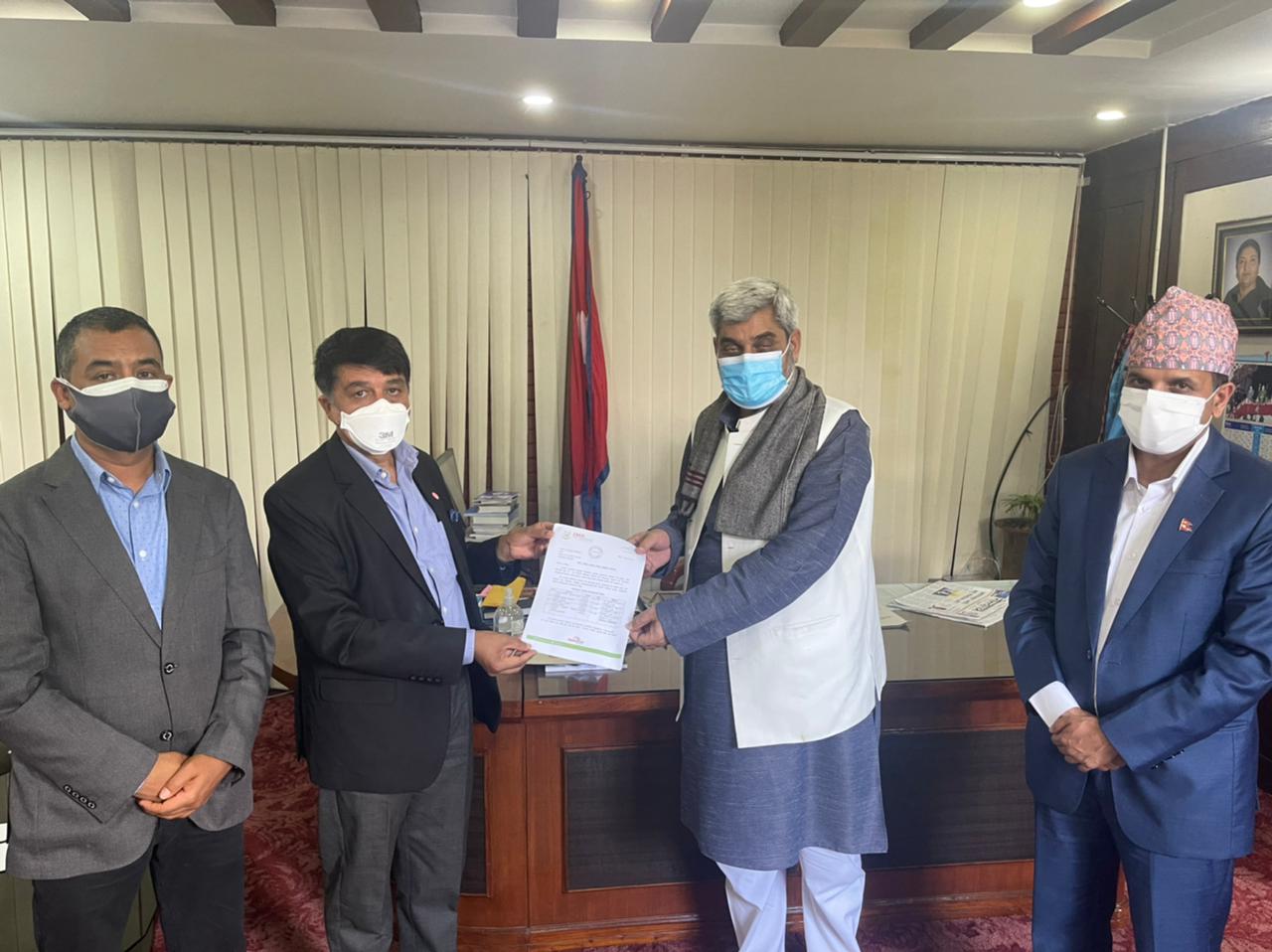 आईएमई फाउण्डेशनका संरक्षक तथा आईएमई ग्रुपका अध्यक्ष श्री चन्द्रप्रसाद ढकाल र फाउण्डेशनका अध्यक्ष तथा आईएमई ग्रुपका प्रबन्ध निर्देशक हेमराज ढकालले मंगलबार स्वास्थ्य मन्त्रालयमा आयोजित एक कार्यक्रमबीच स्वास्थ्य तथा जनसंख्या मन्त्री हृदयेश त्रिपाठीलाई संयुक्तरुपमा ८० थान अक्सिजन कन्सन्ट्रेटर हस्तान्तरण गरेका हुन् ।