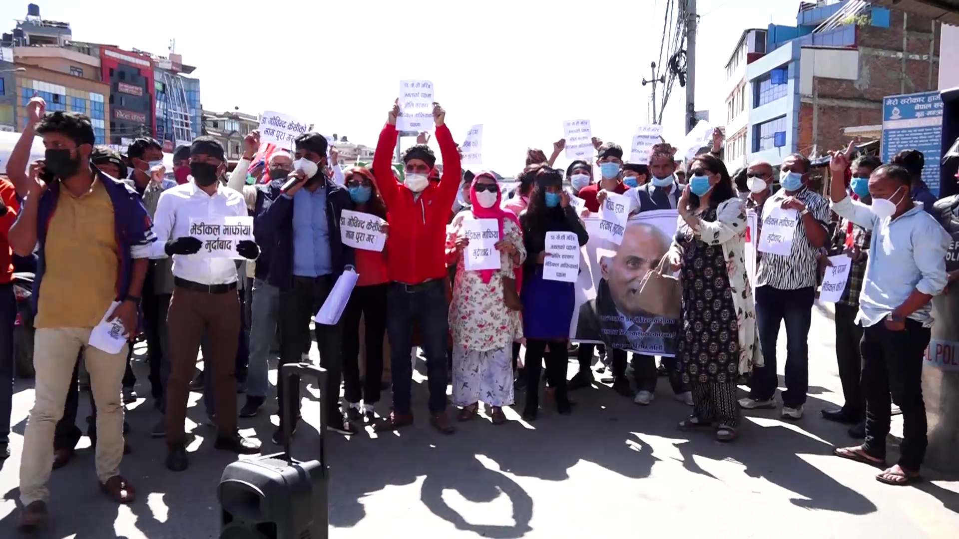 विरोध प्रदर्शनमा विद्यार्थी नेताहरु विभिन्न ब्यानर सहित उपस्थित भएका थिए । ‘डा. गोविन्द केसीको माग पूरा गर’, ‘मेडिकल माफिया मुर्दावाद’, ‘दूरदराजमा मेडिकल कलेज खै’ लगायत लेखिएका ब्यानर लिएर विद्यार्थीहरु उपस्थित भएका थिए ।