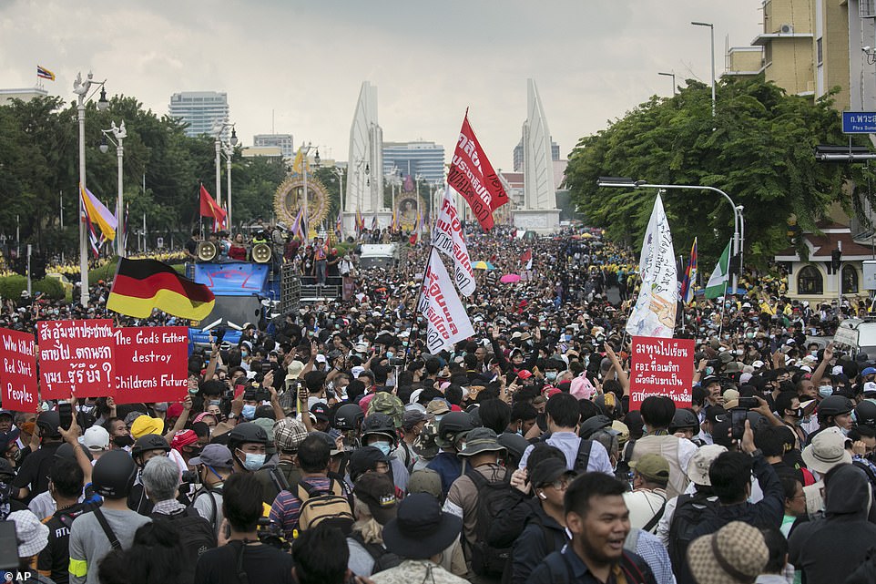 थाई नरेश जर्मनीबाट फर्किने क्रममा प्रजातान्त्रिक अधिकारका लागि भन्दै आन्दोलनरत विद्यार्थी समूहले राजाविरूद्ध नाराबाजी गरेका छन् । राजधानी बैंककमा नै राजाविरोधी नारा लागेपछि सरकारले देशभर सङ्कटकालको घोषणा गरेको छ ।