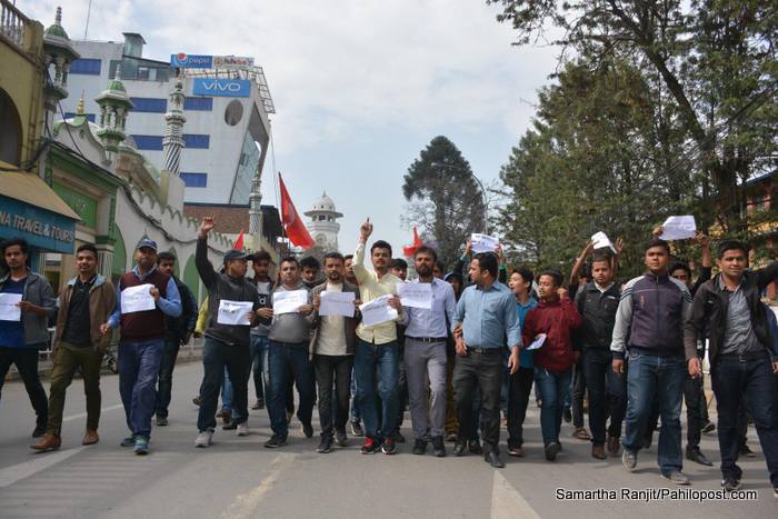 नेविसंघका महामन्त्री कुन्दनराज काफ्लेको नेतृत्वको टोलीले आज त्रिचन्द्र क्याम्पस अगाडि एक घण्टा ¥याली, प्रदर्शन तथा कोणसभा आयोजना गरी विरोध जनाएको हो ।