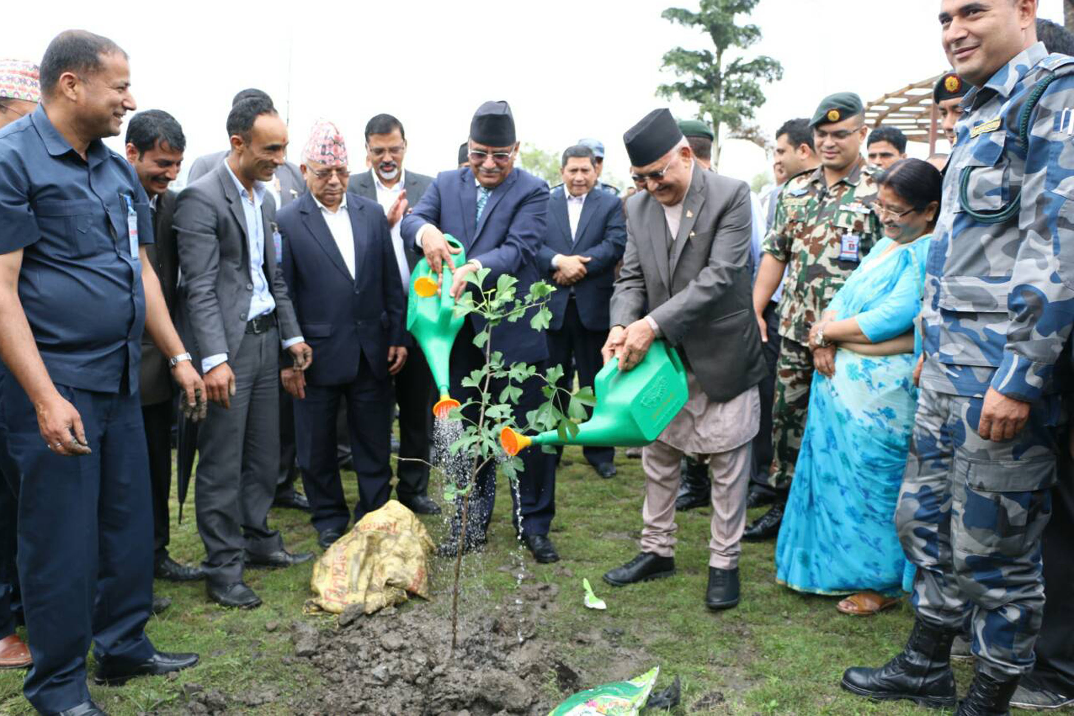 पार्टी एकता दिगो र चिरस्थायी होस् भन्ने कामना र सन्देशका लागि जापानबाट ल्याइएको ऐतिहासिक बिरुवा जिन्को वाइलोवा तथा नेपालमा पाइने आँप, समी, कपुर, अम्बा र एबोगाडो बिरुवा रोपिएको थियो ।