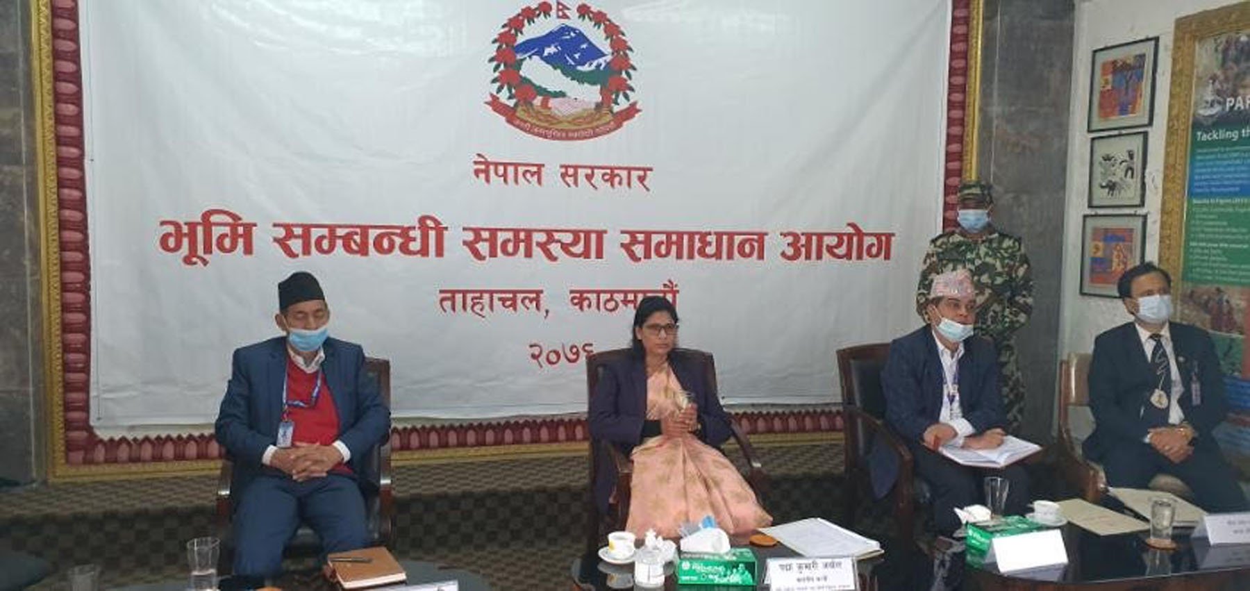 भूमिसम्बन्धी समस्या समाधान आयोगको पहिलो बैठकलाई सम्बोधन गर्दै उनले लामो समयदेखि रहँदै आएको भूमिमा रहेको द्वैध स्वामित्व अन्त्य गरिने बताइन् । उनले भूमिको विवाद सहमति भए आधा–आधा बराबरी बाँडफाँड हुने र सहमति हुन नसकेमा राज्यले गरिदिने बताइन् ।