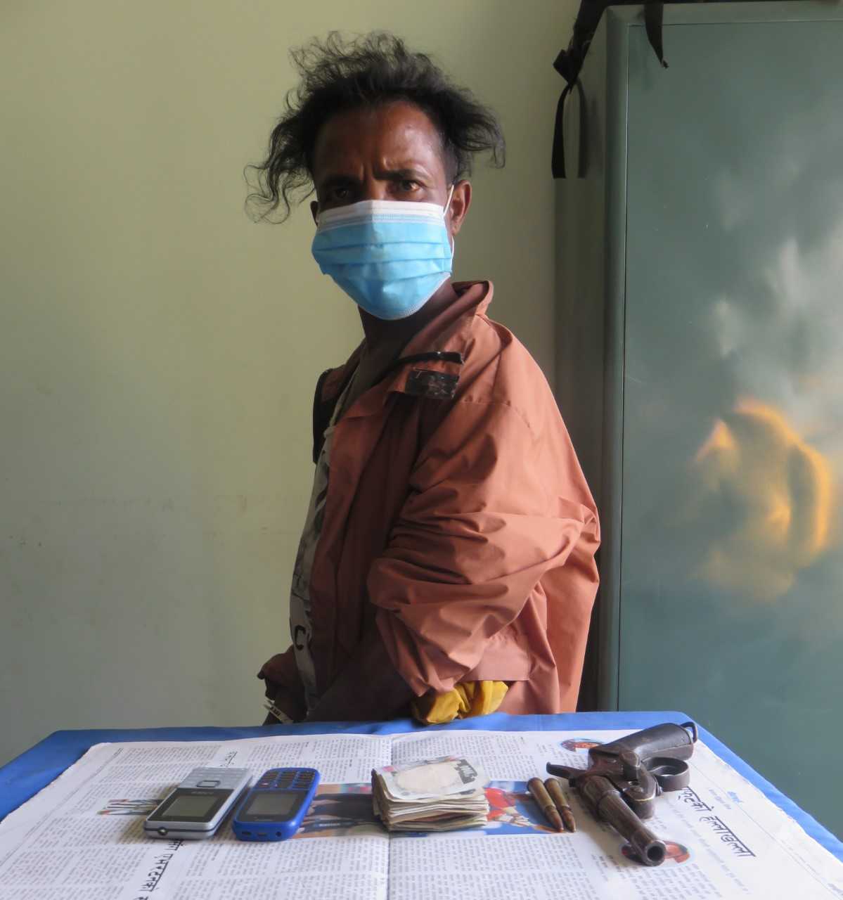 नियन्त्रण पश्चात उनको चेकजाँच गर्दा कम्मरमा लुकाई छिपाई राखिएको अवस्थामा एक थान कटुवा पेस्तोल, दुई राउण्ड गोली र नगद १९ हजार ३ सय २५ रुपैया समेत फेलापारी बरामदगरिएको जिल्ला प्रहरी कार्यालय मोरङले जनाएको छ । उनीमाथि थप अनुसन्धान भईरहेको प्रहरीले जनाएको छ ।