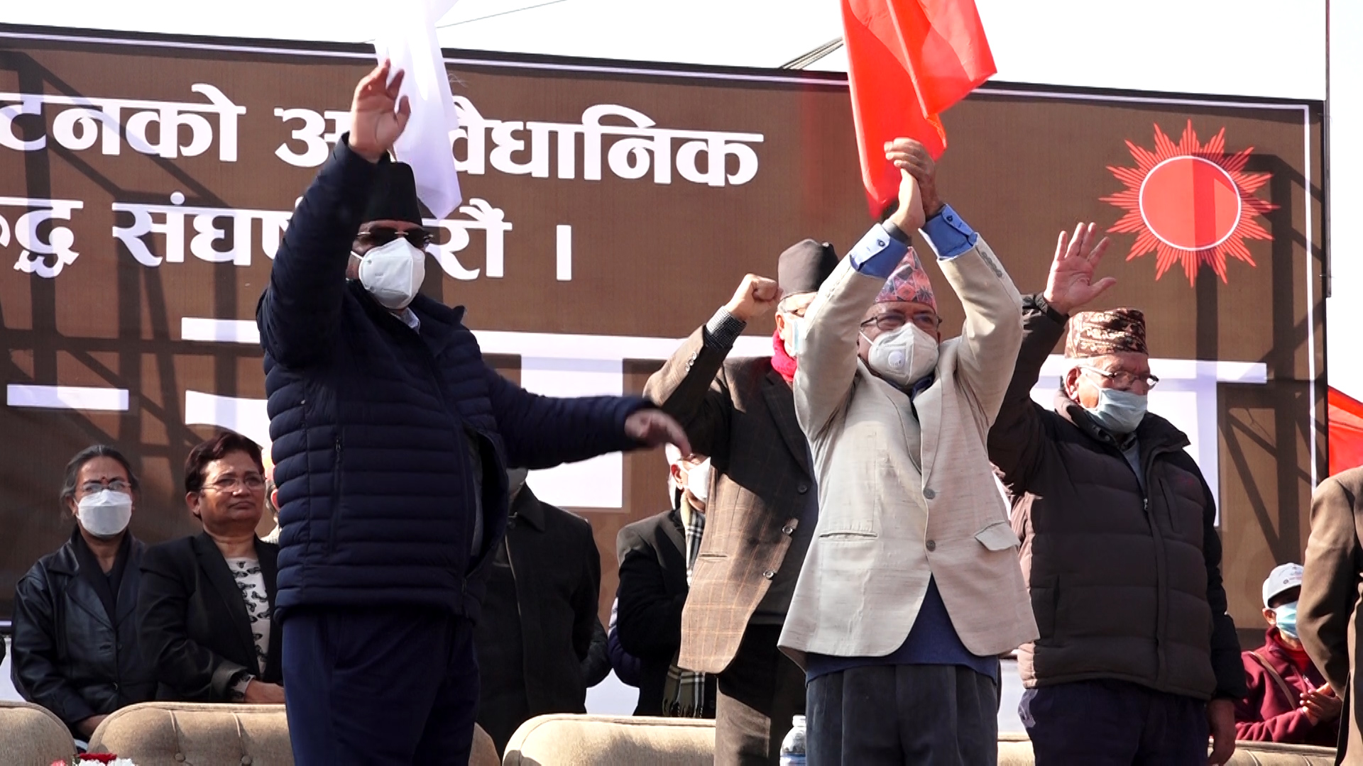 प्रधानमन्त्री केपी शर्मा ओली संघीय लोकतान्त्रिक गणतन्त्र, संघीयता, धर्म निरपेक्षता तथा समानुपातिक समावेशी प्रतिनिधित्वको विरोधी रहेको र कम्युनिष्ट आदर्श, मूल्य मान्यता र विचारमा स्खलित भइसकेको आरोप लगाउनुभयो । संविधान माथि यति निर्मम प्रहार आजसम्म कसैले नगरेको भन्दै अध्यक्ष प्रचण्डले आफैले बनाएको प्रधानमन्त्रीले यसो गर्नुहोला भन्ने कहिल्यै नसोचेको बताए। प्रतिनिधि सभा विघटनको विरुद्धमा सबै राजनीतिक दल, बुद्धिजिवी, नागरिक समाज सबै आन्दोलनमा उत्रिएको र सर्वोच्च अदालतका पूर्व न्यायाधिसदेखि हरेक क्षेत्रका मानिसहरुले असंवैधानिक र अलोकतान्त्रिक कदम भनिरहेको परिवेशमा सिंगो देशको आवाजलाई सर्वोच्च अदालतले सम्मान गर्दै प्रतिनिधि सभा विघटनको विरुद्धमा फैसला आउने विश्वास व्यक्त गरे । उनले अदालतको फैसलालाई प्रभावित पार्न सडकमा आएका नभई फैसला निम्ति जनताले गरेको सहजीकरणको रुपमा सडकमा आएको रुपमा बुझिदिन आग्रह गरे ।