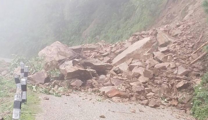 २० पौष, जुम्ला । कर्णाली राजमार्ग अन्तर्गत बालीघाटमा ठूलो ढुङ्गा खसेपछि सडक अवरुद्ध भएको छ ।