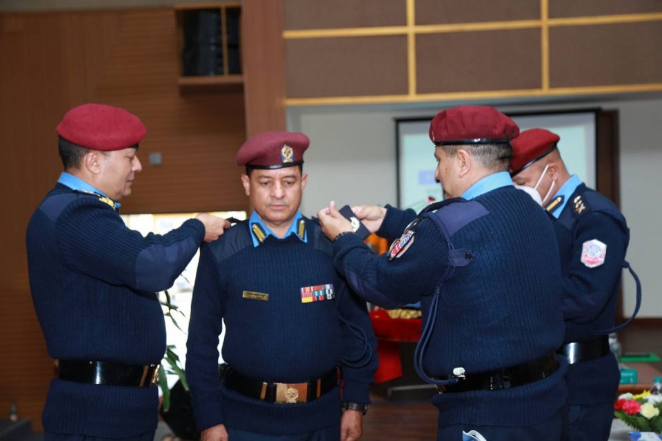प्रहरी वरिष्ठ उपरीक्षकबाट प्रहरी नायव महानिरीक्षक पदमा पदोन्नति भएका ९ जना वरिष्ठ प्रहरी अधिकृतहरूलाई आज एक कार्यक्रमका बिच प्रहरी महानिरीक्षक शैलेश थापा क्षेत्रीले दर्ज्यानी चिन्ह प्रदान गरेका छन् ।