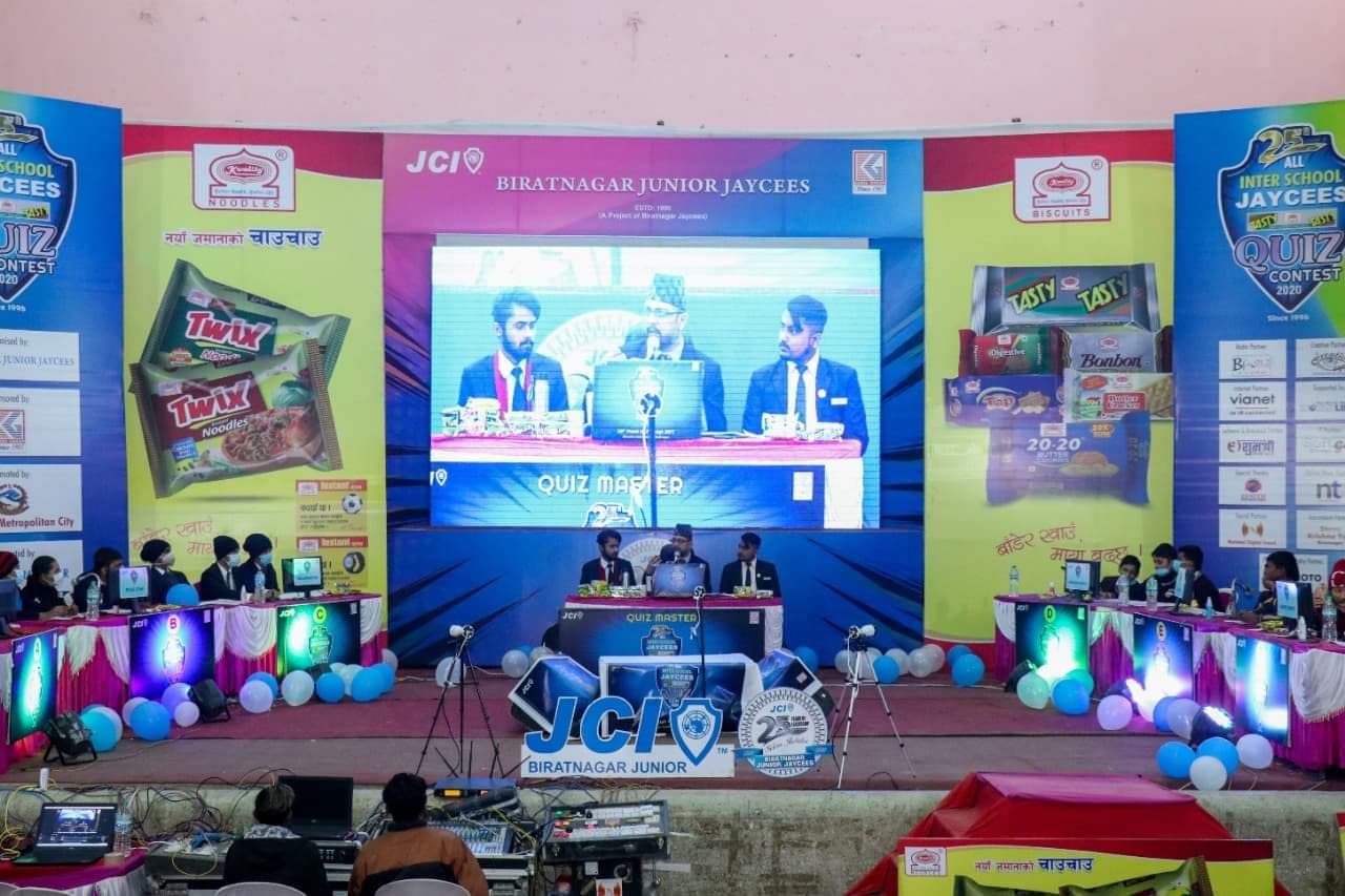 शुक्रबारसम्म चल्ने प्रतियोगितामा मोरङ र सुनसरीका सामुदायिक र संस्थागत गरि २० वटा विद्यालयको सहभागिता रहेको छ । प्रतियोगिताको क्वीज मास्टरका रुपमा विराटनगर जुनियर जेसिजका संस्थापक अध्यक्ष डा.सन्देशदास श्रेष्ठ र पुर्वअध्यक्ष सन्दिपदास श्रेष्ठ रहेका छन् । अन्तर विद्यालय स्तरिय जेसिज टेष्टि टेष्टि क्वीज प्रतियोगिता २४ बर्षदेखि विराटनगर जुनियर जेसिजको आयोजना र टेष्टि टेष्टि विस्कुटको प्रायोजनमा वीरेन्द्रसभा गृहमा सञ्चालन हुँदै आएको छ ।