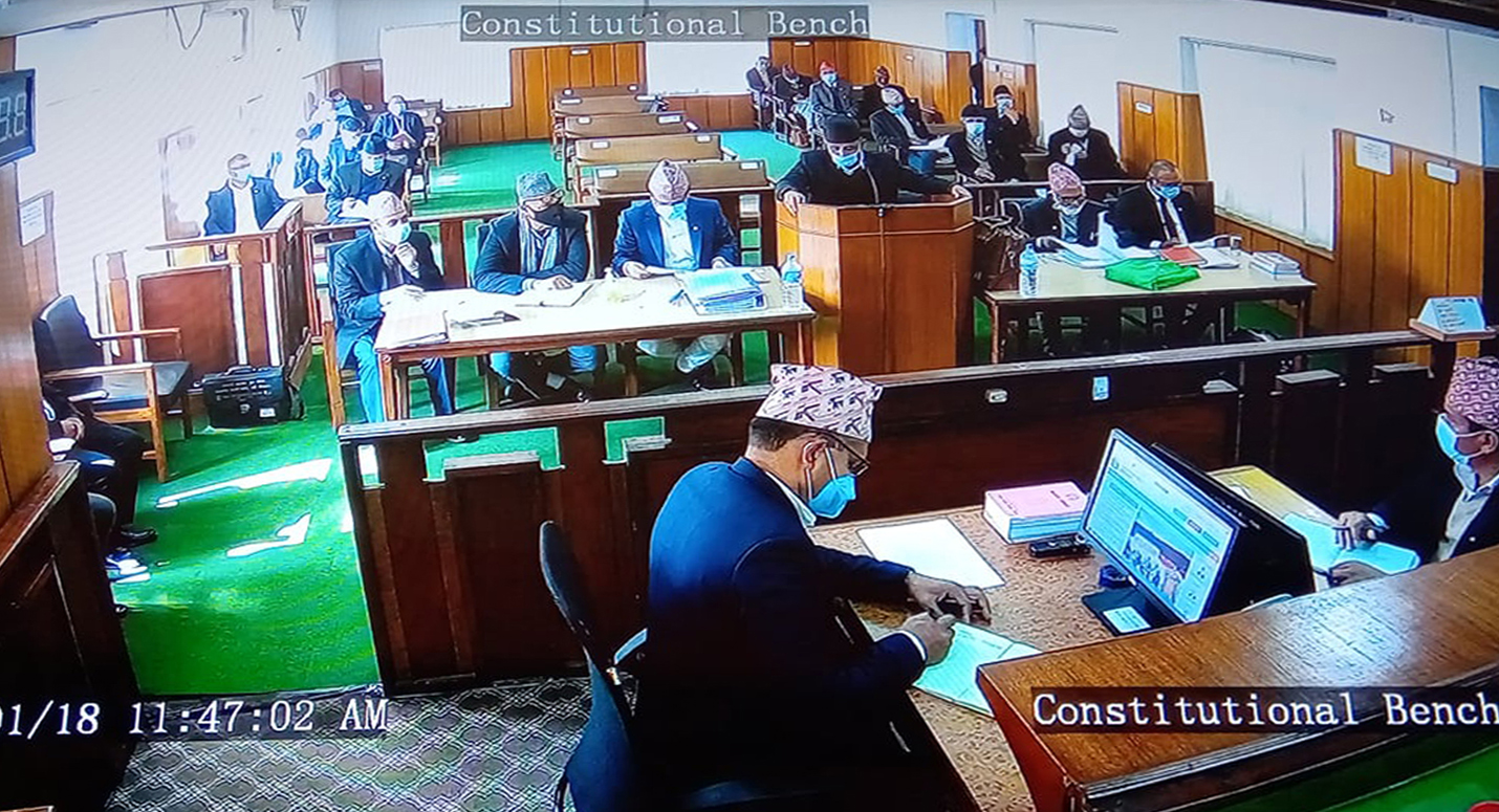 आजसम्म रिट निवेदकका तर्फबाट ३५ कानून व्यवसायीले बहस गरे । इजलासले समयमा निकै कडाइ गरेको छ । आज वरिष्ठ अधिवक्तालाई आधा घण्टा र अधिवक्तालाई १५ वा १० मिनेटको समय निर्धारण गरिएको थियो । गत पुस ११ गतेदेखि सर्वोच्च अदालत, संवैधानिक इजलासमा सुनुवाई शुरु भई क्षेत्राधिकार विवादमा बहस भएपछि संवैधानिक इजलासमै सुनुवाई गरिने भनी यही माघ २ गते आदेश भएको थियो ।