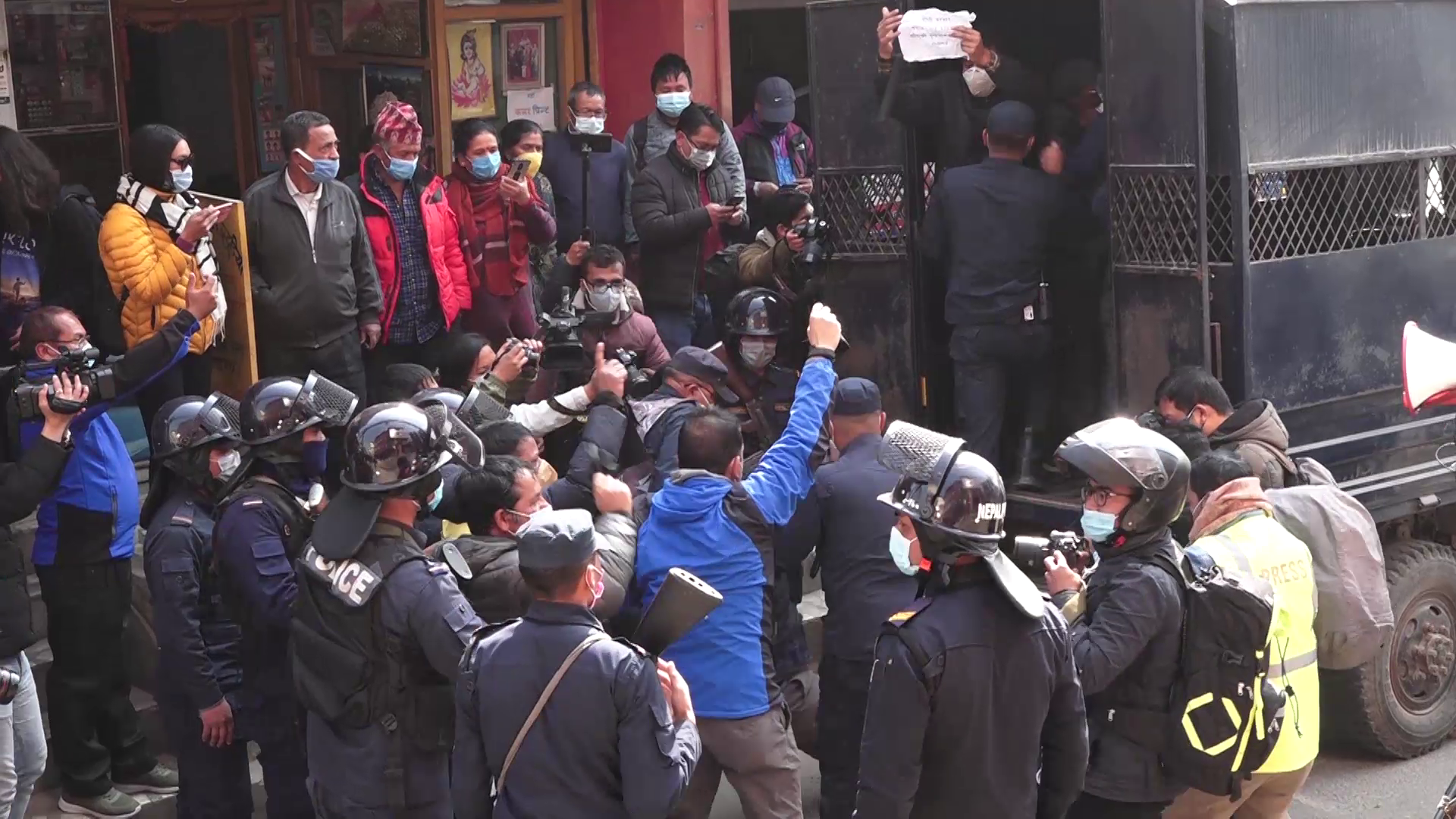 सोमबार मध्यान्ह बालुवाटार पुगेर प्रदर्शन गरेको शान्ति समाजको टोलीलाई प्रहरीले नियन्त्रणमा लिएको छ । समाजका संस्थापक सभापति कृष्ण पहाडीसहित २६ जनालाई प्रहरीले नियन्त्रणमा लिएको समाजकी सरिता पौडेलले जानकारी दिइन् ।