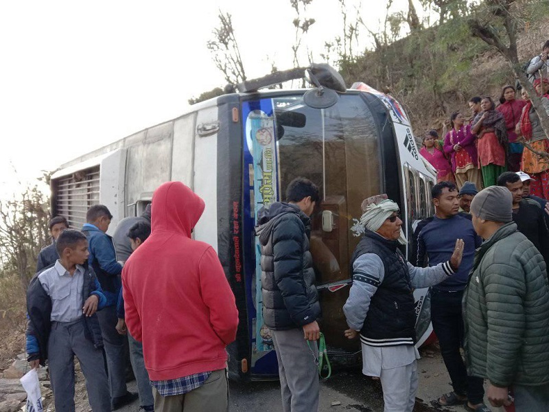 ७ फागुन, रामेछाप । रामेछापको मन्थली नगरपालिका-१ को मच्छेडाँडीमा विद्यार्थी बोकेको बस दुर्घटना हुँदा १७ जना घाइते भएका छन् । घाइते भएकामध्ये दुई जनाको अवस्था गम्भीर रहेको छ ।