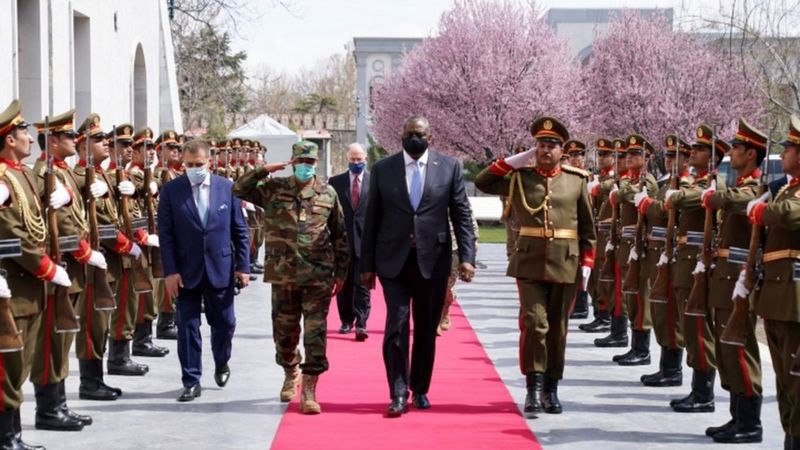 रक्षा मन्त्री अस्टिनको अघोषित भ्रमणलाई अर्थपूर्ण रुपमा हेरिएको छ । अमेरिकाले अफगानिस्तानमा बाँकी रहेका आफ्ना सबै सैनिक फिर्ता लैजाने तयारीको केही हप्ता पहिले अस्टिन अप्रत्याशित रुपमा यात्रामा निस्किएका हुन् ।