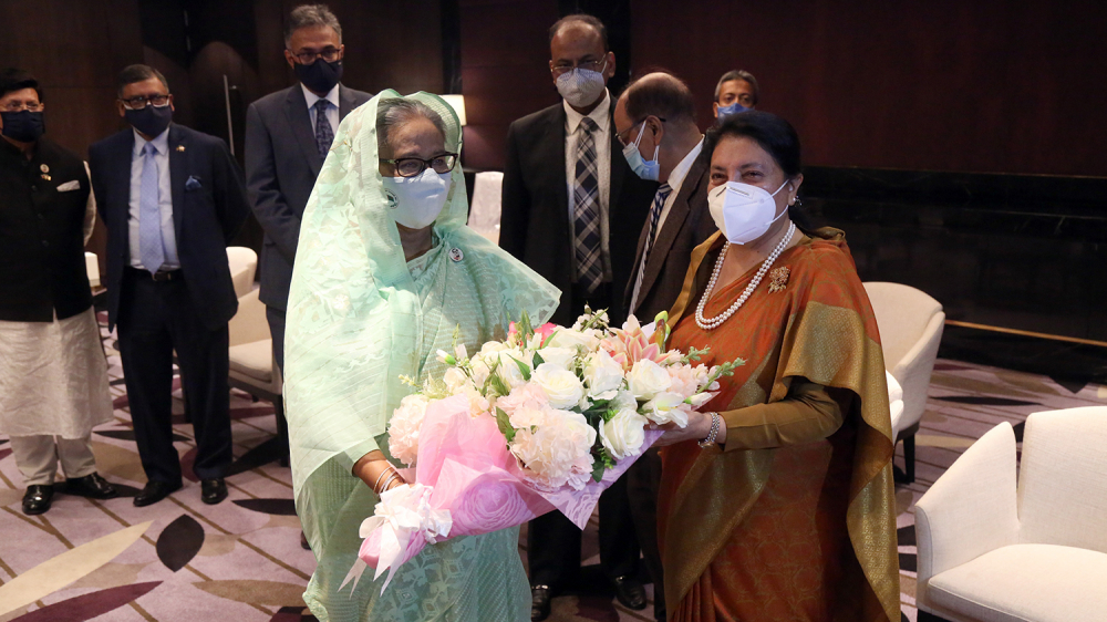 बंगलादेशको राजकीय भ्रमणमा रहेकी राष्ट्रपति विद्यादेवी भण्डारीसँग सोमबार राजधानी ढाकास्थित होटेल कन्टिनेन्टलमा बंगलादेशका प्रधानमन्त्री शेख हसिनाले शिष्टाचार भेटवार्ता गरेकी छन् ।