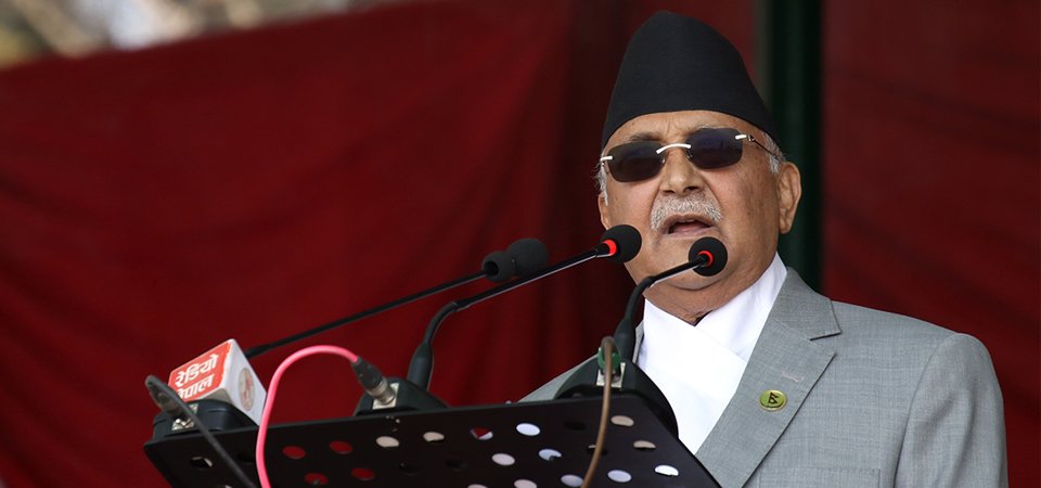 नेपाल उत्पीडित जातिय मुक्ति समाजको राष्ट्रिय भेलालाई सोमबार काठमाण्डौमा सम्बोधन गर्दै प्रधानमन्त्री ओलीले लोकतन्त्र र कम्युनिष्ट आन्दोलनका नाममा नक्कली कुरा गर्नेहरु सलबलाई रहेको बताए । नेकपा माओवादीका अध्यक्ष पुष्पकमल दाहाल तर्फ इंगित गर्दे उनले विगतमा विभिन्न किसिमका सपना बाँडेर युवाहरुलाई युद्धमा लगाउनेहरु नै अहिले लोकतन्त्र र अग्रगामी कदम विरुद्ध लागेको दाबी गरे । झण्डै दुई तिहाईको पार्टी फुटाएर वर्तमान सरकार ठाल्नका लागि अरुसँग विन्ति गर्दै हिडेको भनी उनले दाहालप्रति व्यंग्य गरे ।