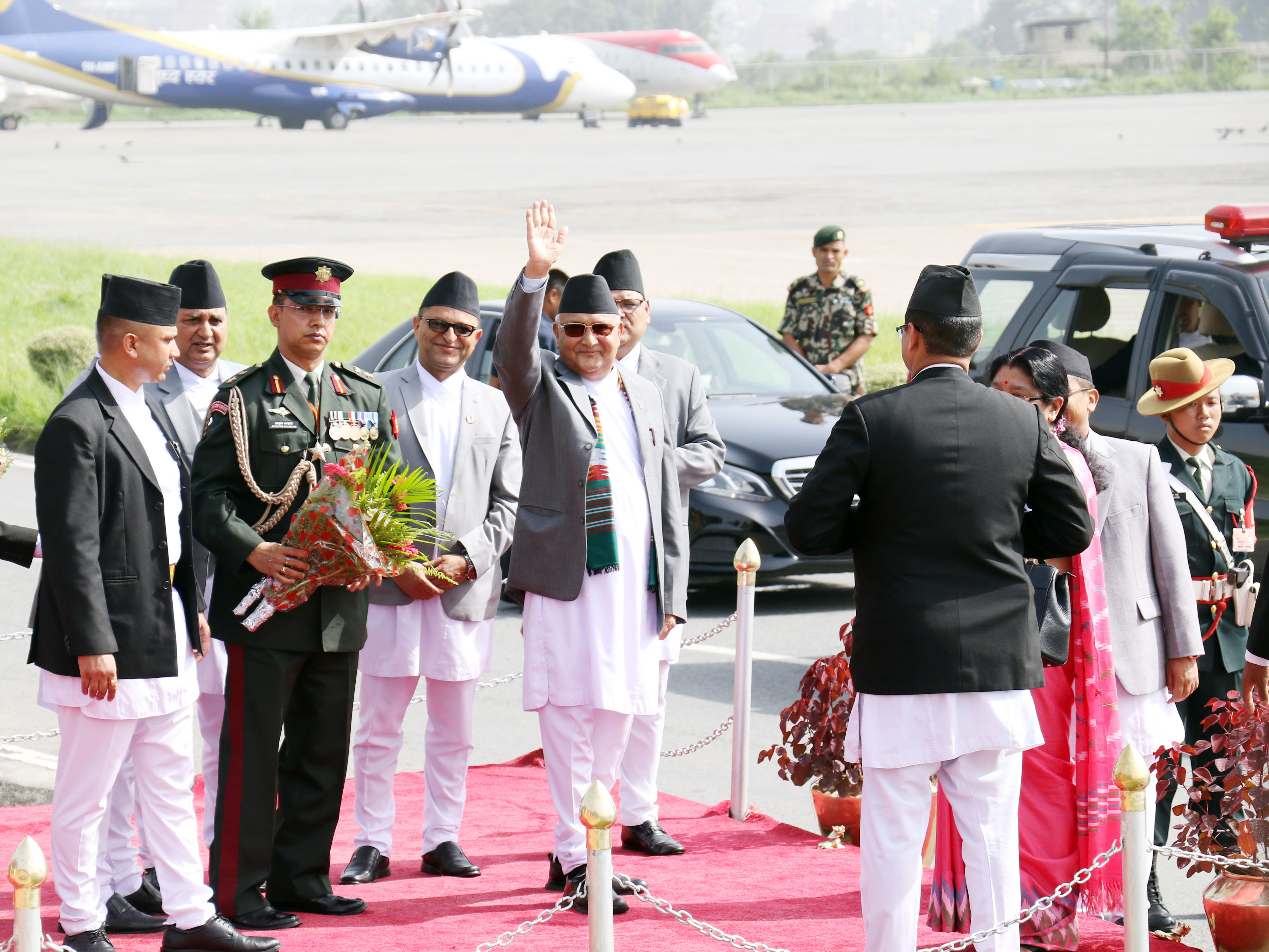 प्रधानमन्त्री ओलीलाई बिदाई गर्नका लागि विमानस्थलमा नेकपाका नेताहरु माधवकुमार नेपाल, नारायणकाजी श्रेष्ठ, वामदेव गौतम, उपप्रधानमन्त्री तथा रक्षामन्त्री ईश्वर पोखरेल, मन्त्रीहरु, सभामुख कृष्णबहादुर महरालगायत थिए ।
