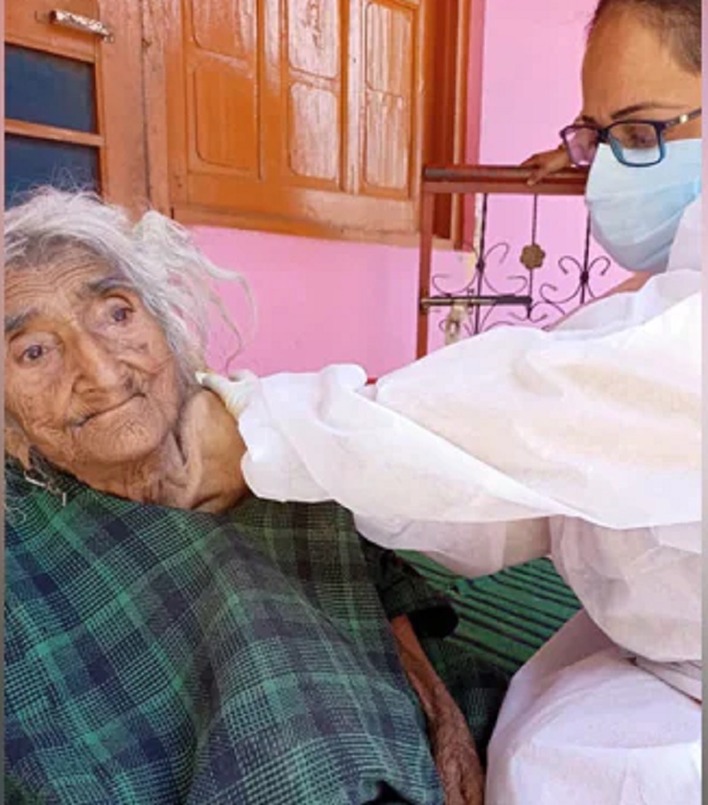 १२४ वर्षकी वृद्धालाई खोप लगाएपछि उनको स्वास्थ्य अवस्था बुझ्न स्वास्थ्यकर्मी घर गएका थिए । स्वास्थ्यकर्मीले उनको स्वास्थ्य अवस्था राम्रो रहेको बताएका छन् ।