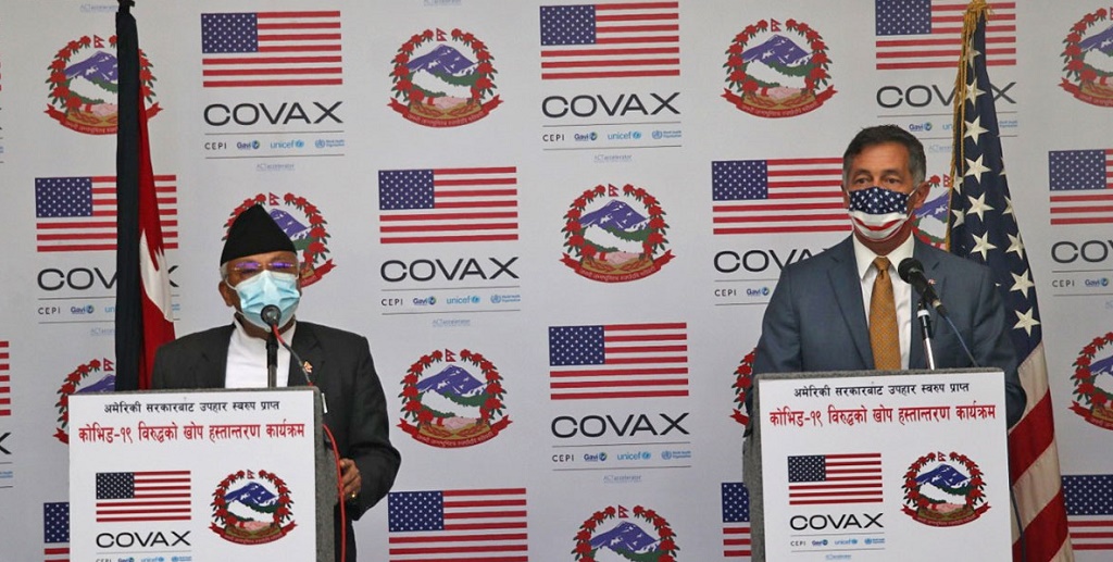 अमेरिकी सरकारबाट उपहारस्वरुप प्राप्त कोभिड–१९ विरुद्धको उक्त खोप नेपालस्थित अमेरिकी राजदूत यान्डी बेरीले आज स्वास्थ्य तथा जनसङ्ख्या मन्त्री कृष्णगोपाल श्रेष्ठलाई हस्तान्तरण गरे ।