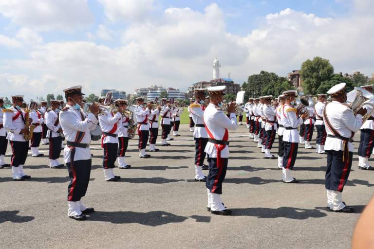 सेनाका विभिन्न टुकुडीहरुले कवाज प्रदर्शन गरे । हेलिकोप्टरबाट पुष्पवृष्टि गरियो ।