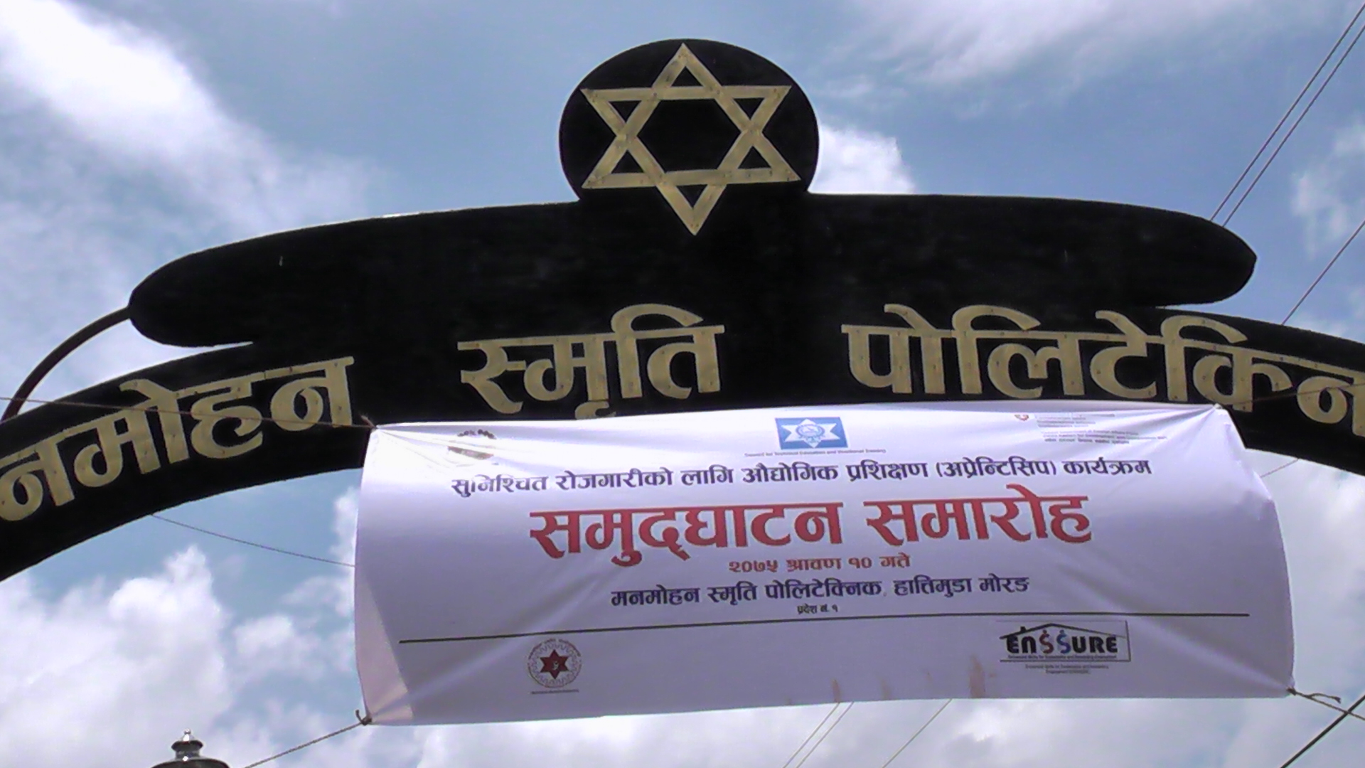 सुनिश्चित रोजगारीका लागि औद्योगिक प्रशिक्षण कार्यक्रम मोरङको बुढीगंगा स्थित मनमोहन स्मृती पोलिटेक्निकमा शुरु भएको छ । ब्यवसायिक शिक्षा तथा तालिम परिषद (सिटिईभिटी)को समन्वय तथा स्वीस सरकारको आर्थिक सहयोगमा संचालित सिटिईभिटीको ईन्स्योरा परियोजना अन्तरगत तालिम शुरु भएको हो ।