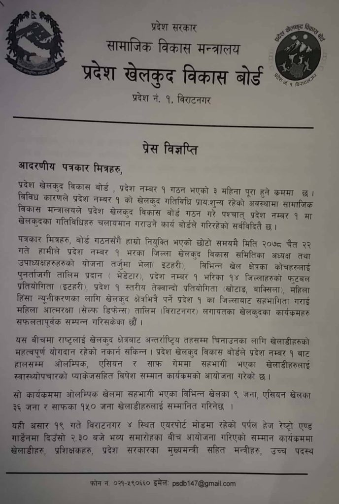 Tags: # खेलकुद#सम्मान#प्रदेश खेलकुद विकास बोर्ड#अन्तर्राष्ट्रिय पदकधारी खेलाडी