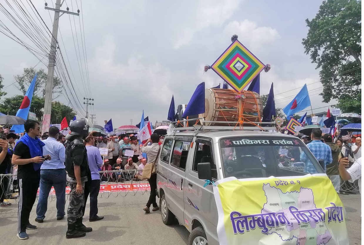 ५ साउन, विराटनगर । लिम्बुवान किराँत प्रदेश घोषणा गर्न माग गर्दै विराटनगरमा प्रदर्शन भएको छ ।पहिचानका आधारमा प्रदेशको नाम घोषणा गर्न माग गर्दै विभिन्न जिल्लाबाट विराटनगर आएका पहिचानवादीहरुले आज मुख्यमन्त्री कार्यालय अगाडि प्रदर्शन गरेका हुन् ।प्रदर्शनकारीले पहिचानविनाको प्रदेश नमान्ने चेतावनी दिएका छन् ।