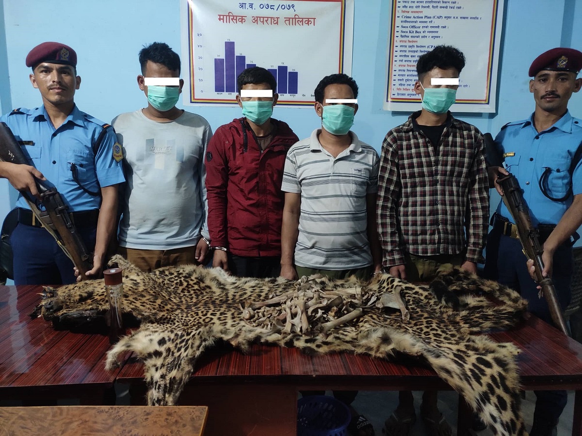 प्रहरीले कैलालीबाट बाघको छालासहित चार जनालाई पक्राउ गरेको छ।बैतडी डिलासैनी गाउँपालिका(२ का राजेन्द्र सिंह भण्डारी र डोटी जोरायल गाउँपालिका २ का समिर ओली, कैलाली चुरे गाउँपालिका ६ का टेकबहादुर रावत र धिरेन्द्र रावतलाई पक्राउ गरेको जिल्ला प्रहरी कार्यालय कैलालीले जनाएको छ।