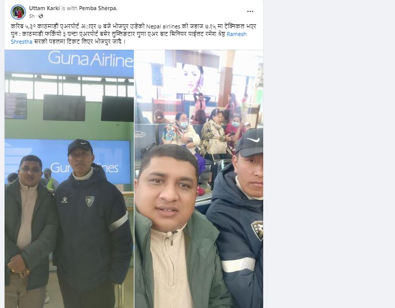 विहान करिब ५.३० काठमाडौं एअरपोर्ट आएर ७ बजे भोजपुर उडेको नेपाल एयरलायन्सकोे जहाज ७.१५ मा टेक्निकल भएर पुन ः काठमाडौ फर्किएको उनले बताएका छन् । विमान यसरी काठमाडौं फर्किएपनि विमानसेवाले अर्काे विकल्प नदिदा ३ घन्टा एअरपोर्ट बसेर आफू तुम्लिङटार हुँदै भोजपुर आएको उनले बताएका छन् ।