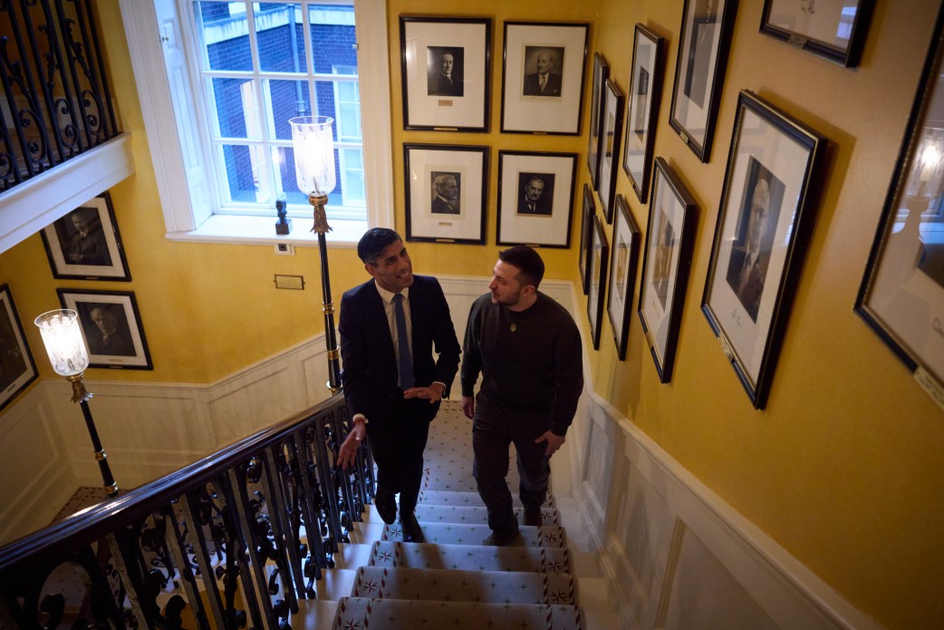 युक्रेनी राष्ट्रपति शाही वायुसेनाको विमानमा बुधबार लण्डन पुगेका थिए । बेलायती प्रधानमन्त्री ऋषि सुनकले युक्रेनी नेतालाई स्वागत गर्दै अंगालो मारेको तस्बिर ट्विट गरेका छन् । जेलेन्स्कीले इन्स्टाग्राममा भनेका छन्, ‘युक्रेनलाई सहयोग गर्न अगाडि आउने पहिलो देश बेलायत हो र आज म बेलायती जनतालाई सहयोगका लागि व्यक्तिगत रूपमा धन्यवाद दिन लन्डनमा छु ।