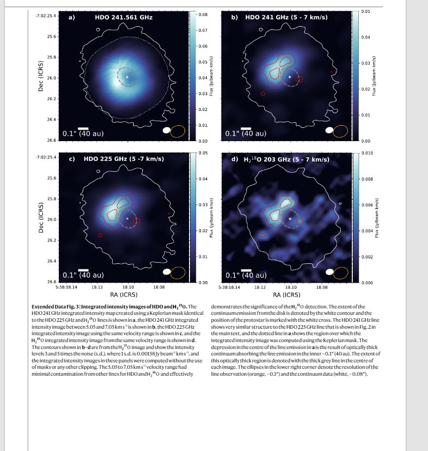 अन्वेषकहरूको टोलीले ग्रह गठन गर्ने डिस्कमा रासायनिक संकेतहरू मापन गर्न ALMA प्रयोग गरेका छन्। यस क्रममा उनीहरूले अन्तरिक्षमा ग्यासको रूपमा पानी वा पानीको वाफ फेला पारेका छन्। यसको खोजले वैज्ञानिकहरूलाई यो पानी ताराको गठनदेखि ग्रहको गठनसम्म कसरी यात्रा गर्छ भन्ने कुरा बताएको छ।