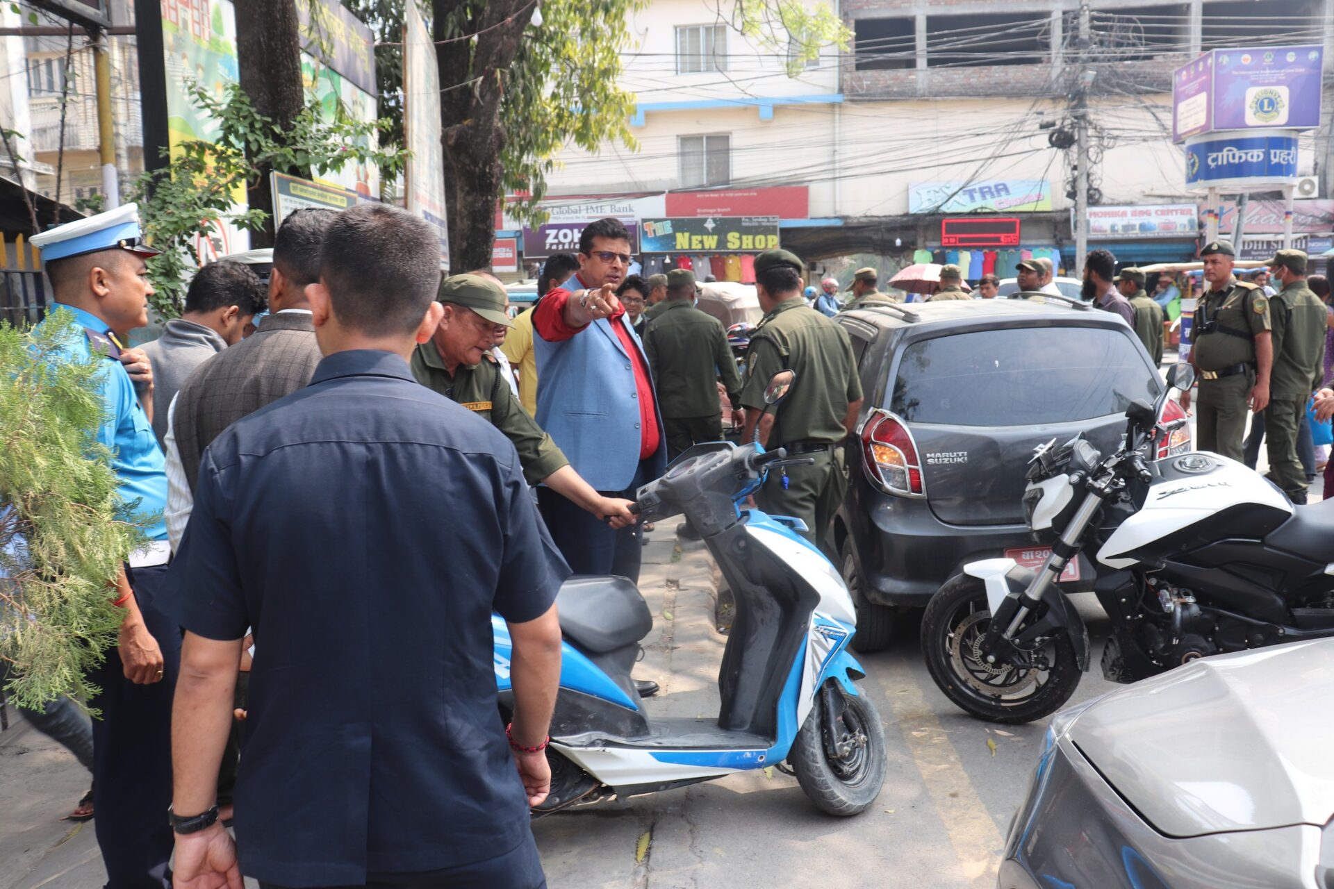 महानगर प्रहरीसहित पुगेका मेयर कोइरालाले सडकमा पार्किङ गरेका सवारीलाई तत्काल हटाउन निर्देशन र्दिका थिए । मेयरको निर्देशनपछि नगर प्रहरीले मोटरसाइकलहरु हटाएको थियो । सडकमा राखेका चारचक्के सवारी ट्राफिक आफैंले हटाएको थियो ।उनले ट्राफिक प्रहरी कार्यालय अगाडि फुटपाथका मोटरसाइकलसमेत हटाउन निर्देशन दिए ।