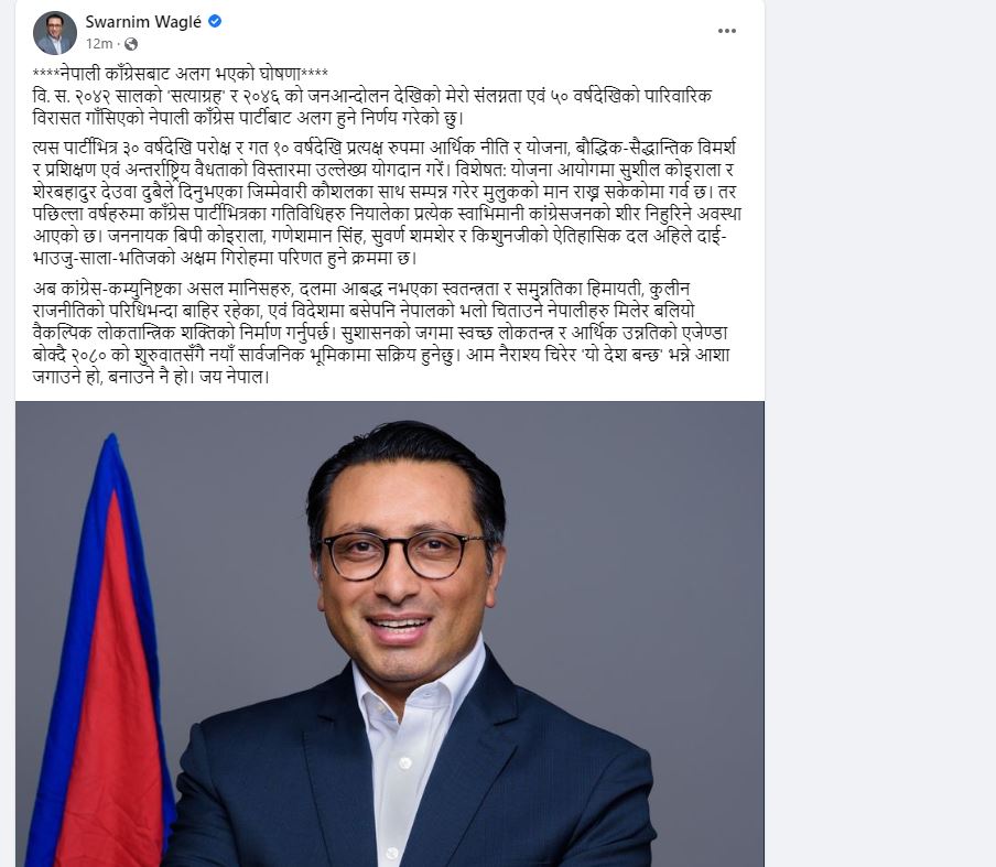 उनले नेताहरुलाई भेटेर कुरा राख्दा कांग्रेस नछोड्न आग्रह गर्ने भन्दै आफू निगाह कुरेर नबस्ने उल्लेख गरेका छन् । डा. वाग्लेले समय तोकेर आफ्नो उमेर, ज्ञान र ऊर्जा सान्दर्भिक रहँदै डेलिभरीको प्रयासमा लागेको बताएका छन् । वाग्लेले अन्तिममा लेखेका छन्, कांग्रेस पार्टीमा हजुरहरुको निर्णायक हैसियत बनेको दिन फेरि हामी कुनै न कुनै रुपमा जोडिनसक्ने आशा छ ।