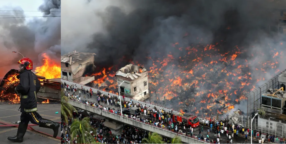 बंगलादेशको मुख्य कपडा बजार बंगबजारमा भीषण आगलागी भएको छ। फर्स्ट सर्विभ कन्ट्रो रुमका ड्युटी अधिकारी रफी अल फारुकले आगो बिहान ६ बजे लागेको बताएका छन्। उक्त बजारमा चार हजारभन्दा बढी पसल छन्। आगलागिपछि सबै दमकललाई त्यहीँ केन्द्रित गरिएको छ। अहिलेसम्म ४७ गाडीले आगो निभाइरहेका छन्।