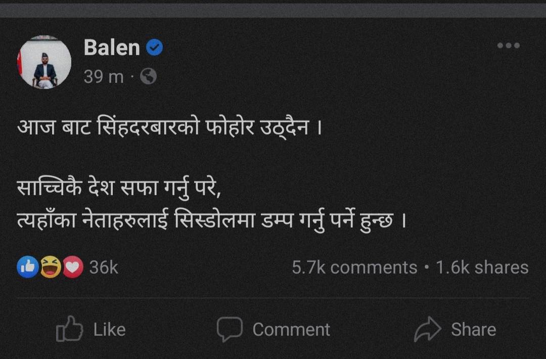 Tags: #बालेन साह#अब सिंहदरबारको फोहोर उठ्दैन#बालेन#बालेनले खोले संघ सरकारमाथि फायर