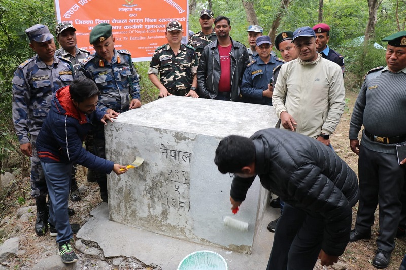 कपिलवस्तुदेखि बाँकेको सीमासम्म पर्ने झन्डै ८३ किलोमिटर नेपाल–भारत सीमा क्षेत्र छुट्याउने ७७ मध्ये ३५ वटा सीमा स्तम्भको मर्मत र रङ्गरोगन गर्ने काम शुरु भएको सशस्त्र प्रहरी बल ज्वालामाई गण भालुवाङका प्रमुख, सशस्त्र प्रहरी उपरीक्षक गोपाल श्रेष्ठले जानकारी दिए ।