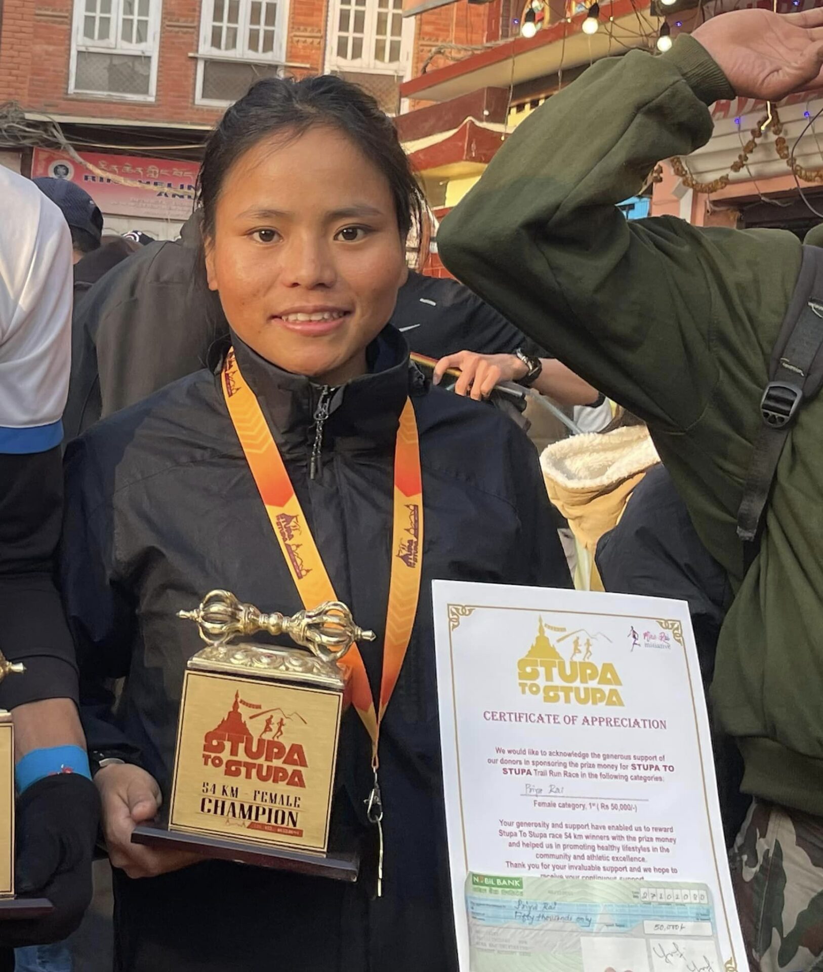 झुलेमा सुरु भएर रानीकोटमा सम्पन्न भएको ३० किमी दौडमा पुरुषतर्फ रमेश लिम्बु र महिलातर्फ प्रिया राई पहिलो भएकी थिइन । महिलातर्फ च्याम्पियन बनेकी प्रियाले चार घन्टा पाँच मिनेट ५२ सकेन्डमा दौड पूरा गरेकी थिइन । सो स्टेज रेस च्यालेन्सको दोस्रो चरणमा स्वदेशी र विदेशी गरी ९६ धावकधाविकाको सहभागिता रहेको थियो । अन्तर्राष्ट्रिय ट्रेल रनिङ संघको राष्ट्रि लिगमा उनी १८९२ स्कोरसहित पहिलो स्थानमा छिन् । पुरुष तर्फ यो सूचीको पहिलो स्थानमा सुमन कुलुङ छन् ।