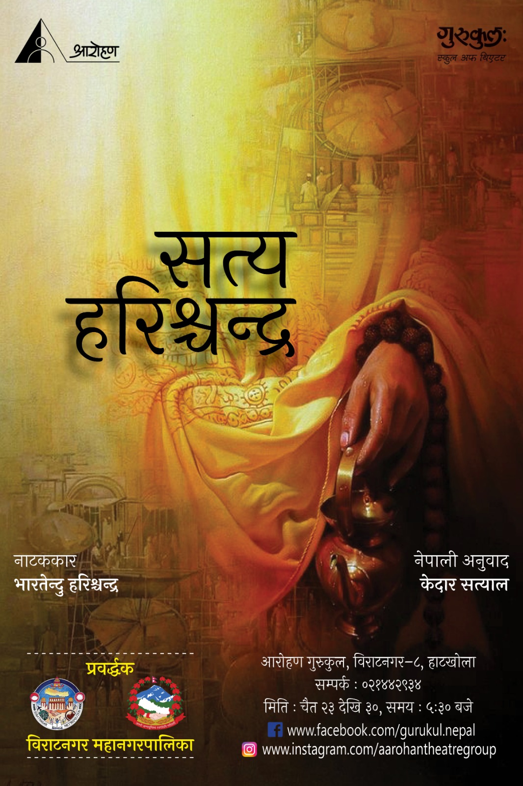 १६ चैत, विराटनगर । विराटनगरस्थित आरोहण गुरुकुलमा ‘सत्य हरिश्चन्द्र’ नाटक मञ्चन हुने भएको छ ।