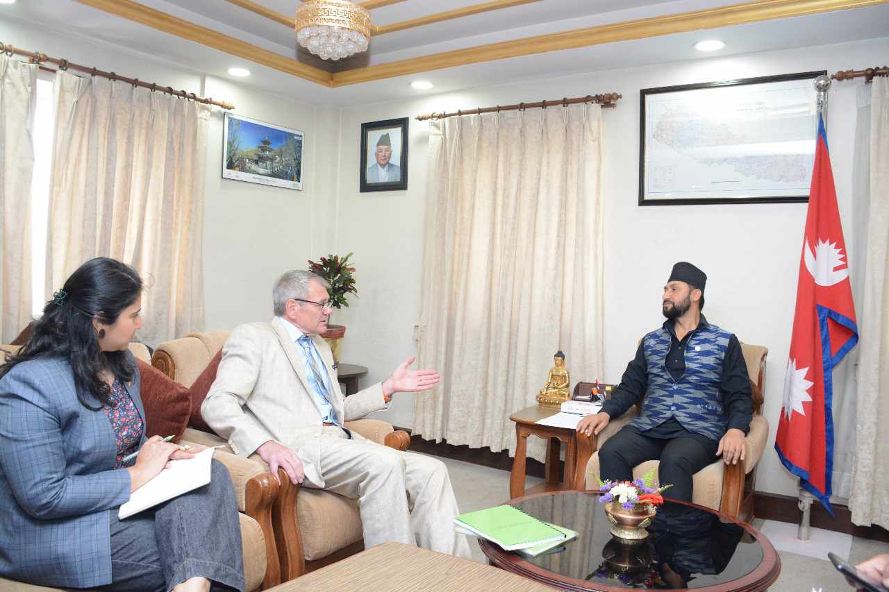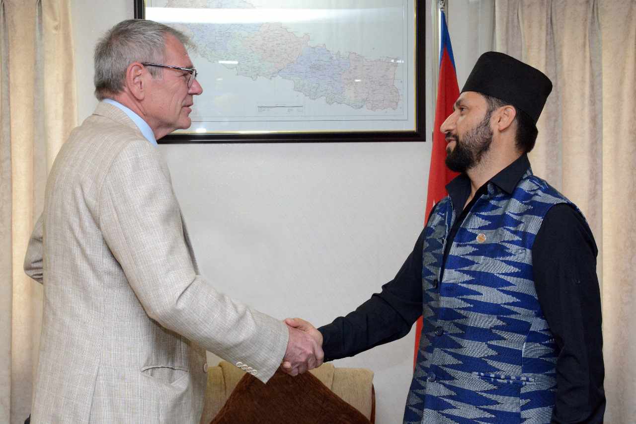 उपप्रधान एवंं गृहमन्त्री रवि लामिछाने र नेपालका लागि जर्मन राजदूत थोमस प्रिन्जबीच भेटवार्ता भएको छ । मंगलवार गृह मन्त्रालयमा भएको भेटघाटका क्रममा राजदूत प्रिन्जले नेपालको अध्यागमन प्रशासन सुधार गर्नका लागि अत्यावश्यक देखिएको ई–गेट निर्माणमा सहकार्य गर्न खोजिएको जानकारी दिएको गृहमन्त्री लामिछानेको सचिवालयले जनाएको छ ।