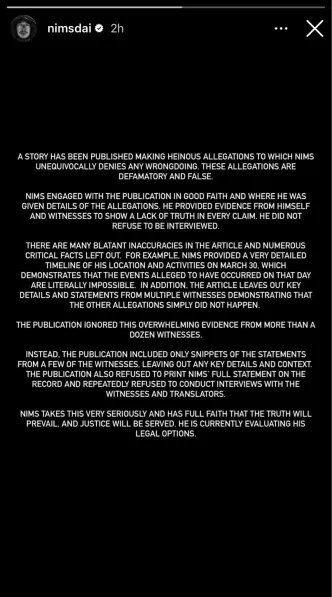 उनले कतारको राजपरिवार सदस्य आश्मा थानीदेखि रसियन मोडल भिक्टोरिया बोन्यालाई समेत गाइड गरेका छन् । निम्सबारे अनलाइन भिडियो स्ट्रिमिङ प्लेटफर्म नेटफ्ल्क्सिले पनि डकुमेन्ट्री बनाएको थियो । यसअघि पनि पुर्जाको नागरिकता र शंकास्पद आगलागीका बदमासीबारे श्रृंखलाबद्ध समाचार प्रकाशित भएका थिए ।