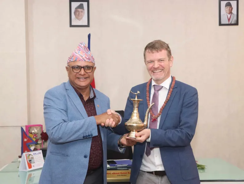 कोशी प्रदेश सरकारका मुख्यमन्त्री हिक्मतकुमार कार्की र स्वीस राजदूतावासका कार्यवाहक राजदूत मैथियास मायर बीच आईतवार भेटवार्ता भएको छ ।