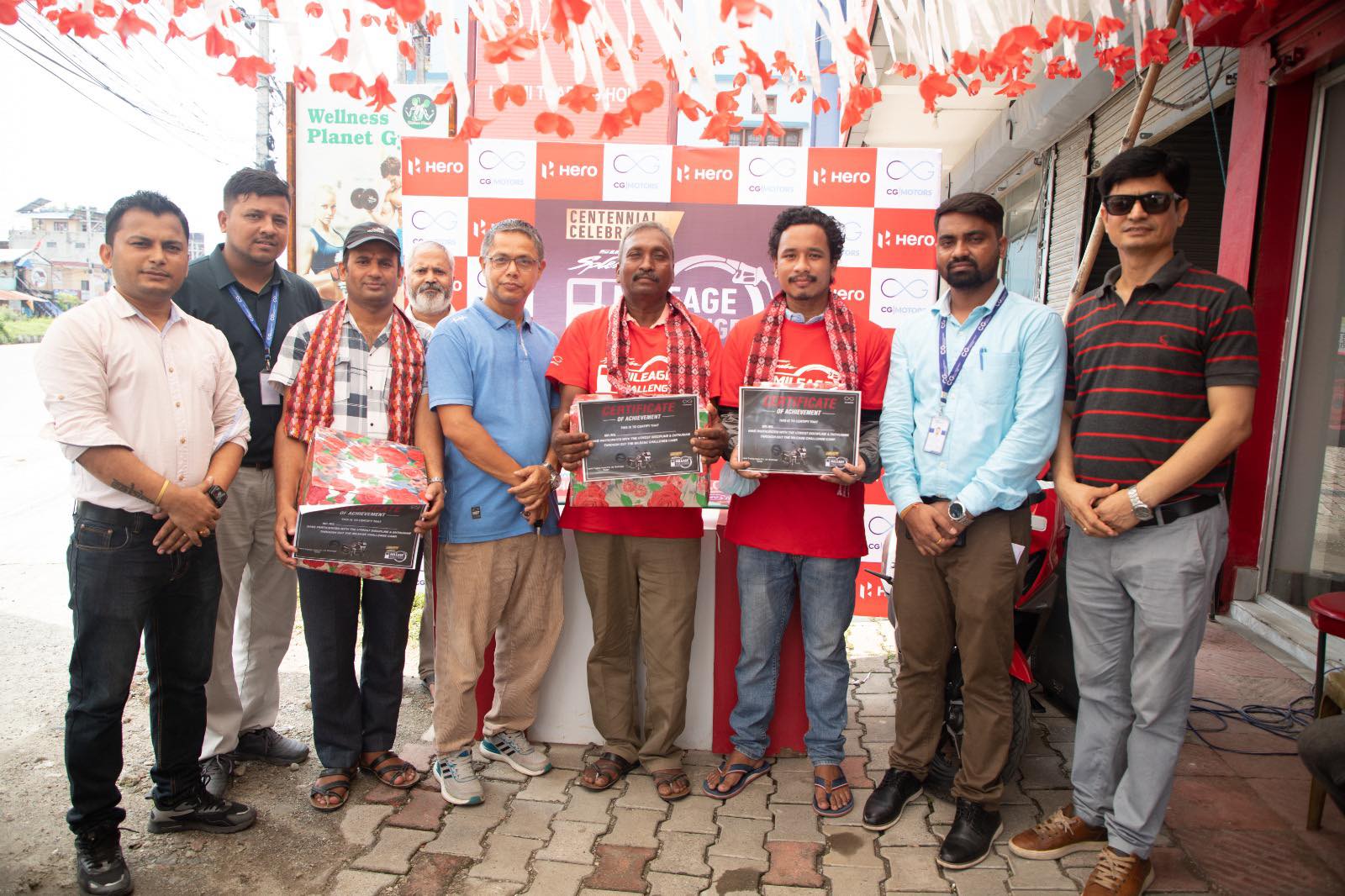 हिरो ब्राण्डको सुपर स्प्लेण्डर मोटरसाइकलका २० जनाप्रतिनिधि ग्राहकमाँझ गरिएको माईलेज चेकअपमा प्रतिलिटर ९० किलोमिटरसम्म माईलेज मापन गरिएको कम्पनीका रिजनल सर्भिस मेनेजर हेमशंकर शाहले जानकारी दिए । माईलेज चेकअपमा सबैभन्दा बढी माईलेज मापन गरिएका पहिलो, दोस्रो र तेस्रो हुनेलाई आकर्षक उपहार प्रदान गरिएको थियो ।
