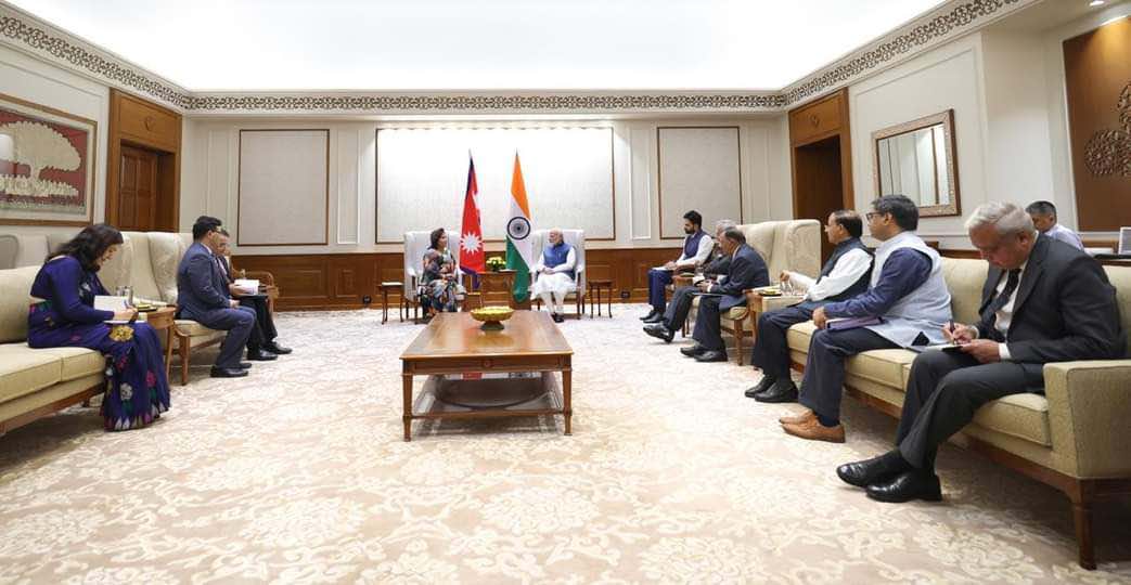 पाँचदिने भारत भ्रमणमा रहेकी परराष्ट्रमन्त्री राणाले सोमबार साँझभारतीय प्रधानमन्त्री नरेन्द्र मोदीसँग भेटवार्ता गरिन् । हैदरावाद हाउसमा मोदी र राणाबीचको भेटवार्ताका क्रममा नेपाल–भारत सम्बन्ध र यसको बहुआयामिक विविधताका विषयमा कुराकानी भएको थियो । भेटपछि परराष्ट्रमन्त्री राणाले नेपालको परराष्ट्रमन्त्रीका रूपमा आफ्नो यो भ्रमण र उच्चस्तरीय भेटवार्ताबाट नेपाल र भारतबीचको ऐतिहासिक सम्बन्ध थप उचाइमा पुग्ने अपेक्षा गरिन् ।