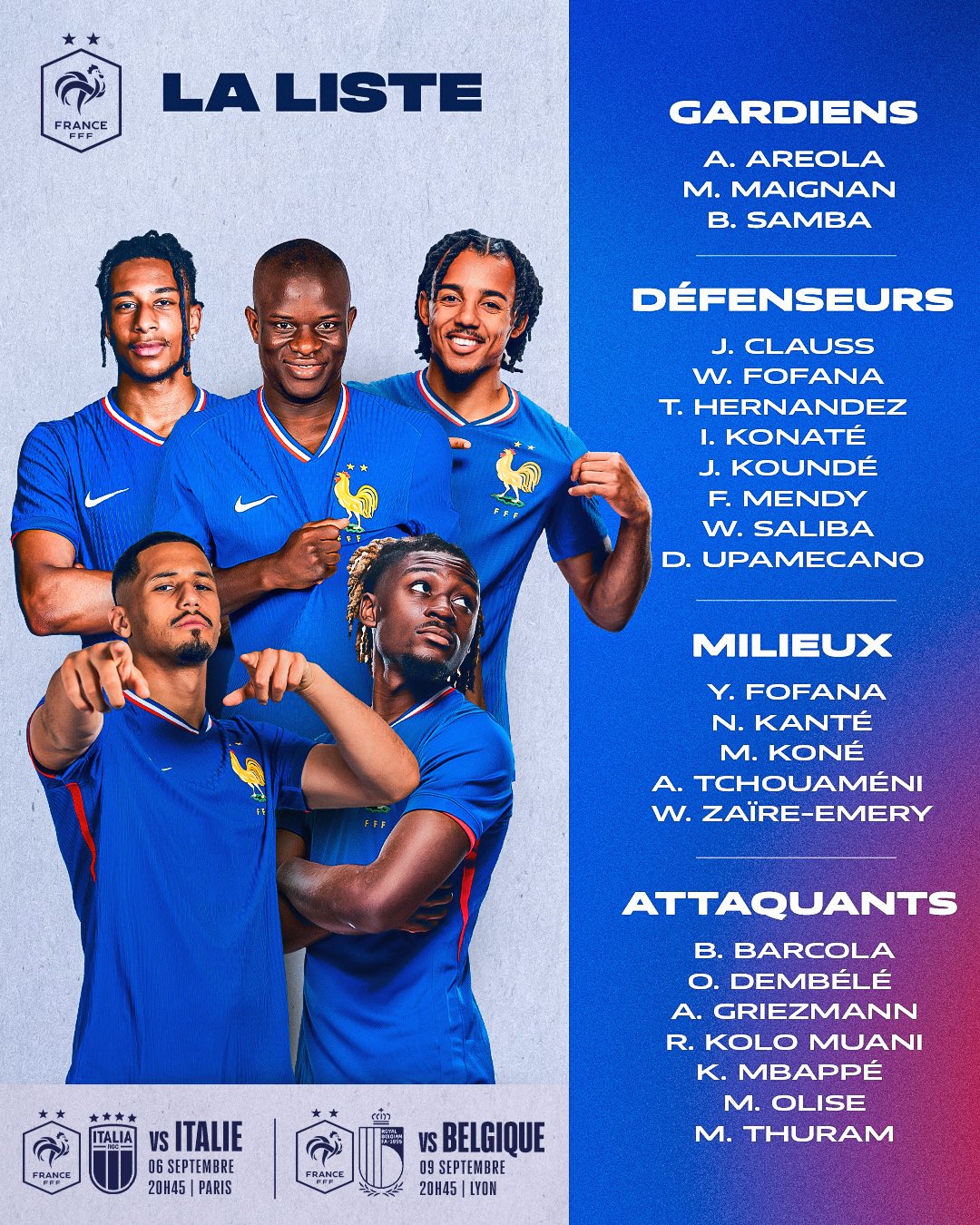फिफा विश्वकप २०१८ को विजेता फ्रान्सले युइएफए नेसन्स लिगका लागि प्रारम्भिक टोलीको घोषणा गरेको छ । बिहीबार मुख्य प्रशिक्षक डिडियर डेशच्याम्पले सार्वजनिक गरेको फ्रान्सेली टोलीमा २३ खेलाडी अटाएका छन् ।