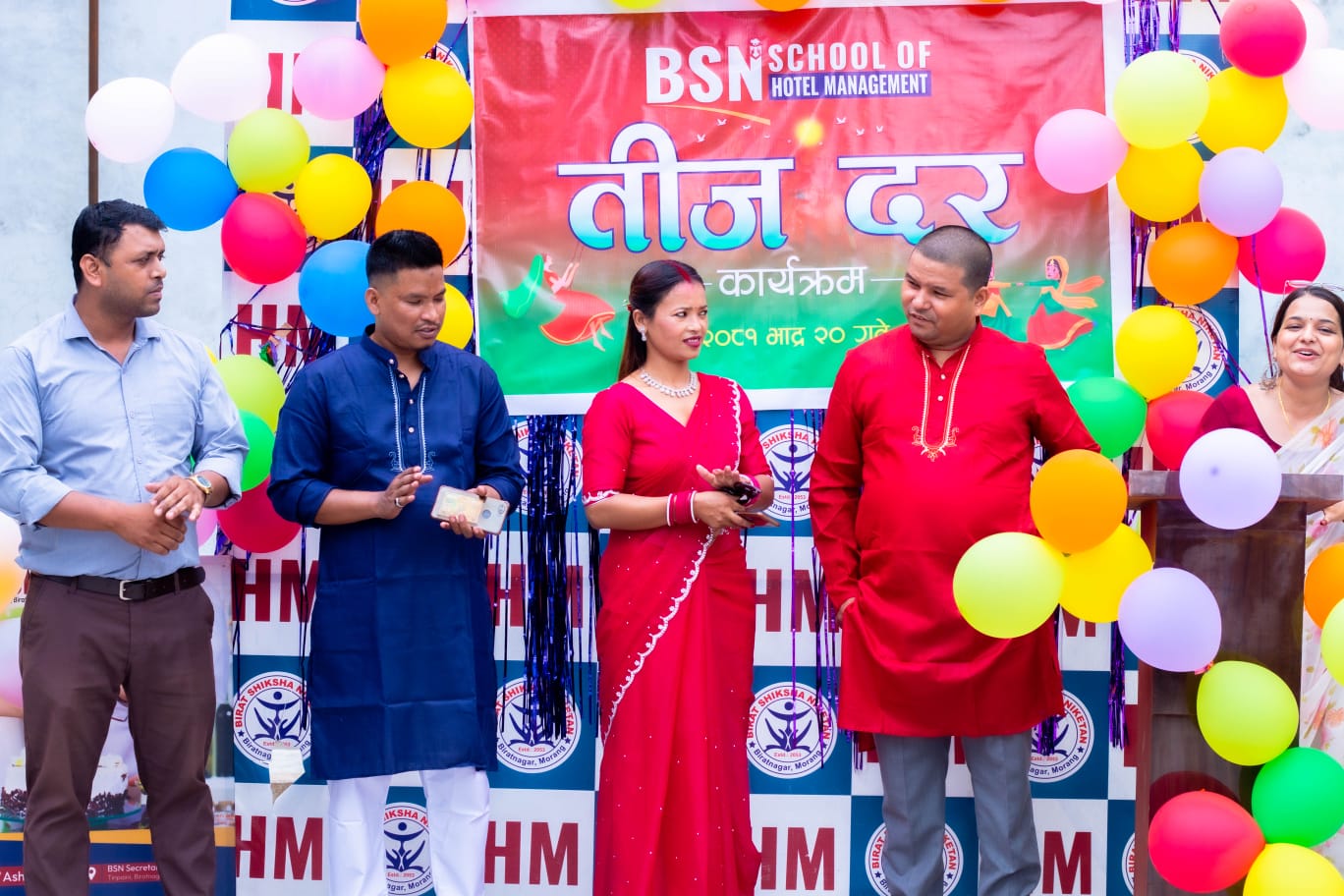 मोरङको विराटनगर महानगरपालिका-२ तीनपैनीस्थित बिएसएन स्कुल अफ होटल म्यानेजमेन्ट स्कुलमा तिजविशेष कार्यक्रमको आयोजना गरिएको छ ।