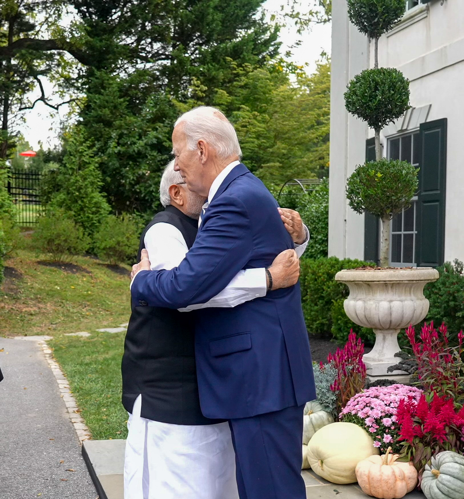 शनिबार अमेरिकी राष्ट्रपति जो बाइडेनसँग मोदीले भेटवार्ता गरेका छन् । भेटका लागि मोदी डेलावेयरस्थित बाइडेनको घर नै पुगेका थिए । त्यहाँ बाइडेनले मोदीसँग हात मिलाए र दुवै नेताले एकआपसमा अँगालो हालेर अभिवादन गरे।