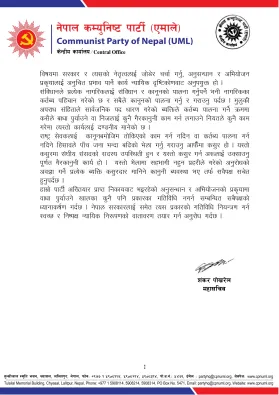 छानविनको प्रकृया अघि बढिरहेको अवस्थामा सम्माननीय प्रधानमन्त्री र नेपाल सरकारका जिम्मेवार व्यक्ति र निकायका विरूद्धमा जिम्मेवार व्यक्तिहरूबाटै अमर्यादित अभिव्यक्ति दिने, गालीगलौच गर्ने र गलत आक्षेप लगाउँदै छानविनको प्रकृयालाई प्रभावित गर्नेगरी भ्रम सिर्जना गर्ने र अस्वस्थ वातावरण सिर्जना गर्ने काम हुनु अत्यन्त दुःखद विषय भएको एमालेले उल्लेख गरेको छ ।