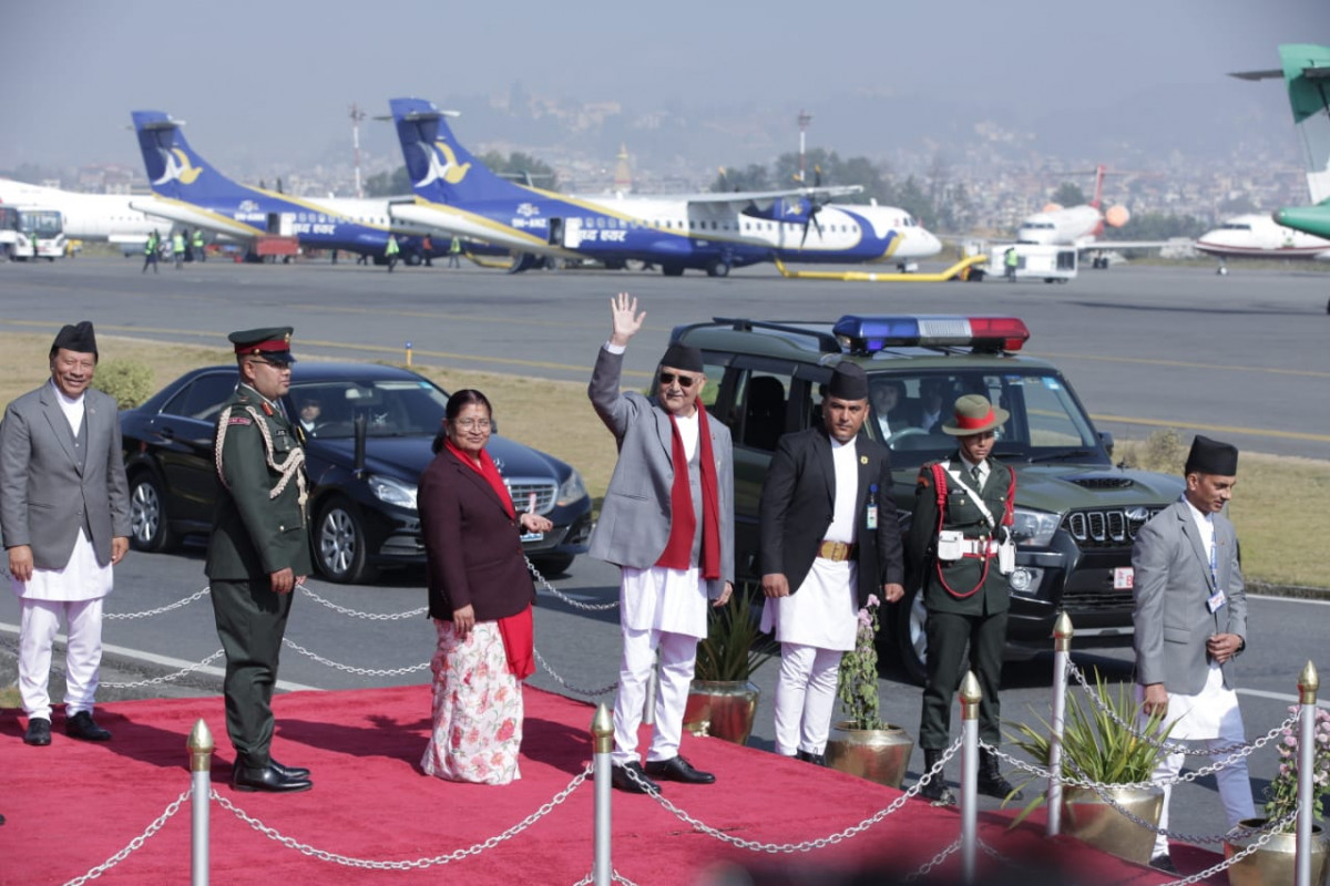प्रधानमन्त्री ओलीका साथमा उनकी पत्नी राधिका शाक्य रहेकी छिन् । प्रधानमन्त्री ओली नेतृत्वको नेपाली प्रतिनिधिमण्डलमा परराष्ट्रमन्त्री डा आरजु राणा देउवा, प्रधानमन्त्रीका मुख्य सल्लाहकार विष्णुप्रसाद रिमाल, प्रधानमन्त्रीका आर्थिक तथा विकास सल्लाहकार डा युवराज खतिवडा, सांसदहरू, सरकारी अधिकारी, निजी क्षेत्रका प्रतिनिधि, सञ्चारकर्मीलगायत सहभागी रहेकाछन् ।