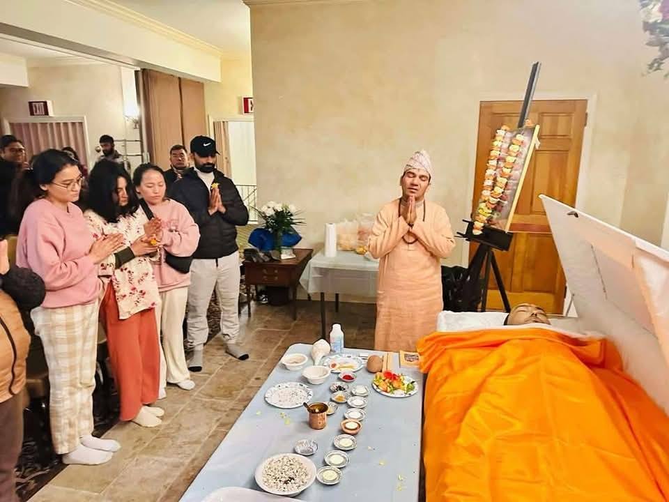 विवेक बाबु मीनराज पंगेनीले अन्तिम श्रद्धान्जली दिएका छन् । दाह संस्कार कार्यक्रममा परिवारजन, साथीभाइ र न्यूयोर्क क्षेत्रमा बसोबास गर्ने नेपाली समुदायका व्यक्तिहरू उपस्थित थिए। अन्तिम श्रद्धान्जलीका क्रममा विवेकी पत्नी सृजना सुवेदी भावविभल बनेकी थिइन ।