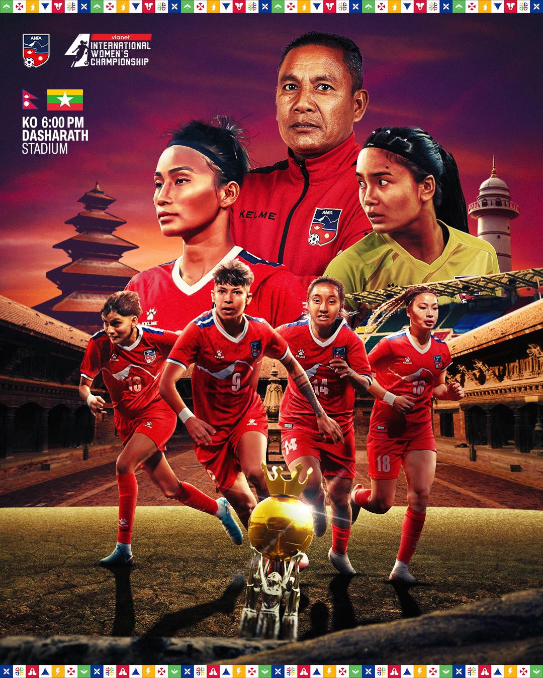 नेपाल र म्यान्मारको राष्ट्रिय महिला टोलीबीच आज साँझ हुने चारदेशीय अन्तर्राष्ट्रिय फुटबलको फाइनल दर्शकका लागि व्यग्र प्रतिक्षाको विषय बनेको छ । घरेलु मैदानमा जारी च्याम्पियनशिपको उपाधिका लागि आज नेपाल र म्यानमार मैदानमा उत्रिदैछन् ।