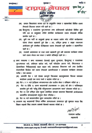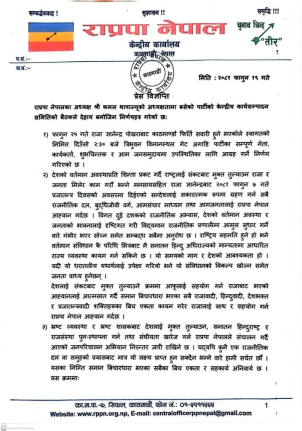 भ्रष्ट व्यवस्था र संघीयता खारेजीका लागि आन्दोलनको तयारी स्वरूप विभिन्न कार्यक्रम संचालन गर्दै जनपरिचालन अभियानलाई निरन्तरता दिने निर्णय भएको समेत उनले विज्ञप्ति मार्फत जानकारी दिएका छन् ।