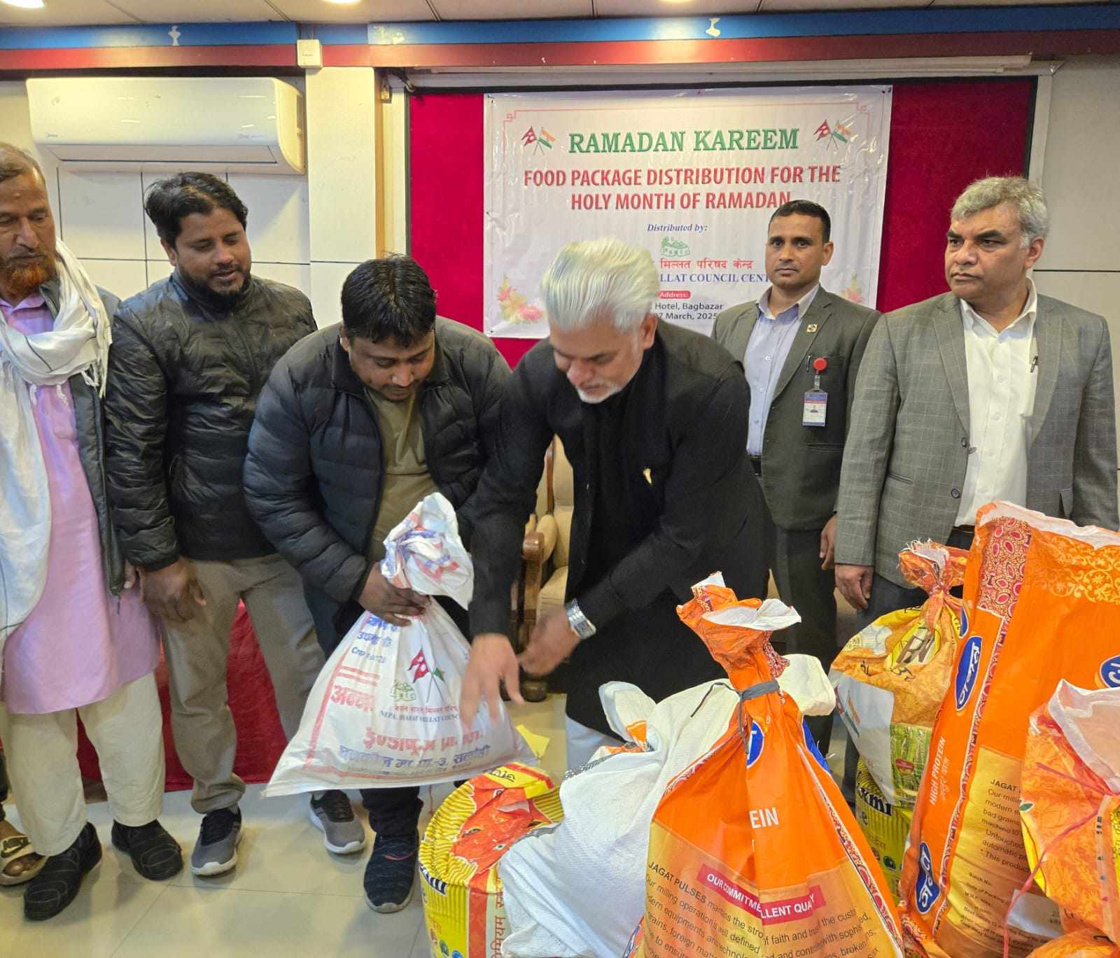 काठमाण्डौमा एक कार्यक्रमको आयोजना गरी करिब डेढ सय परिवारलाई आवश्यक खाद्य सामग्री वितरण गरिएको हो । कार्यक्रममा नेपाल भारत मिल्लत काउन्सिल सेन्टरका अध्यक्ष तथा मुस्लिम आयोगका अध्यक्ष समिम मिया अन्सारी प्रमुख अतिथि रहेका थिए ।